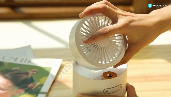 Aigostar - Ασύρματος μίνι επιτραπέζιος ανεμιστήρας με υγραντήρα 10W/5V λευκό | Fotisti kosmos