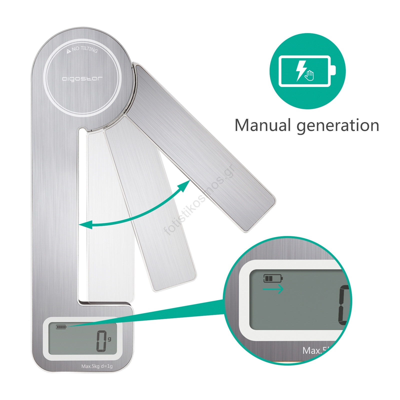 • Η ζυγαριά δεν χρειάζεται μπαταρίες, απλώς ανοίξτε και κλείστε – έτσι ενεργοποιείται και απενεργοποιείται.