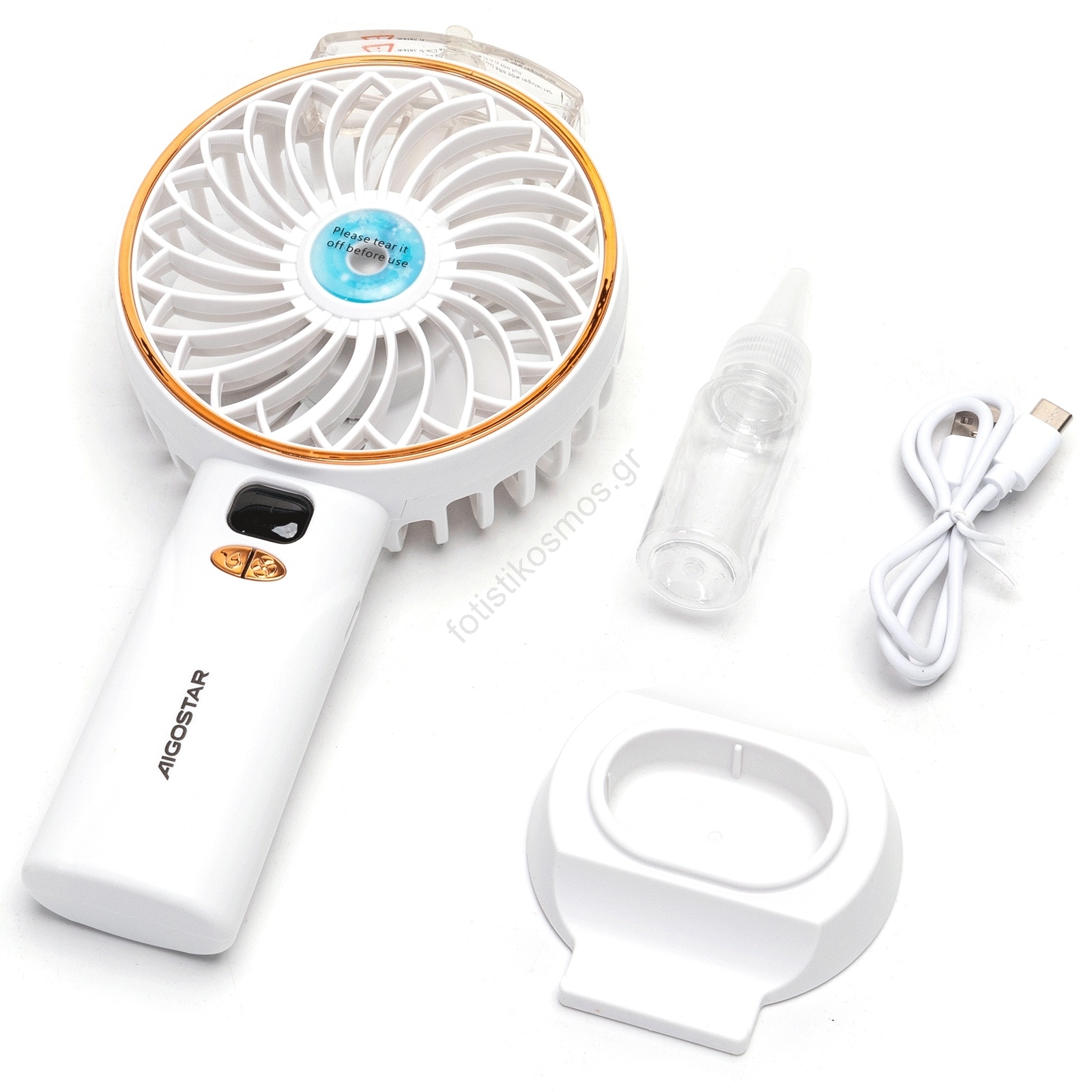 Aigostar - Επαναφορτιζόμενος ανεμιστήρας χειρός 5W/5V 2400mAh USB λευκό | Fotisti kosmos