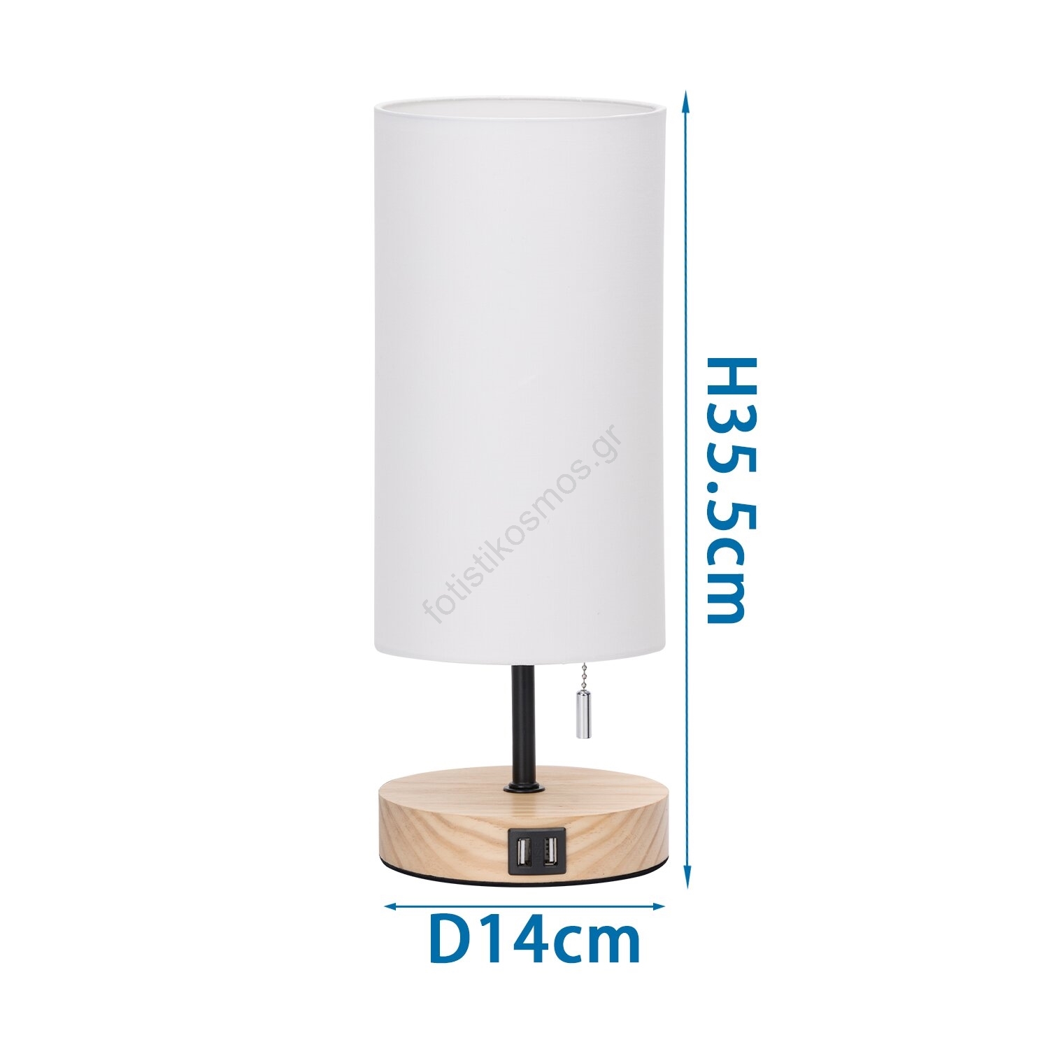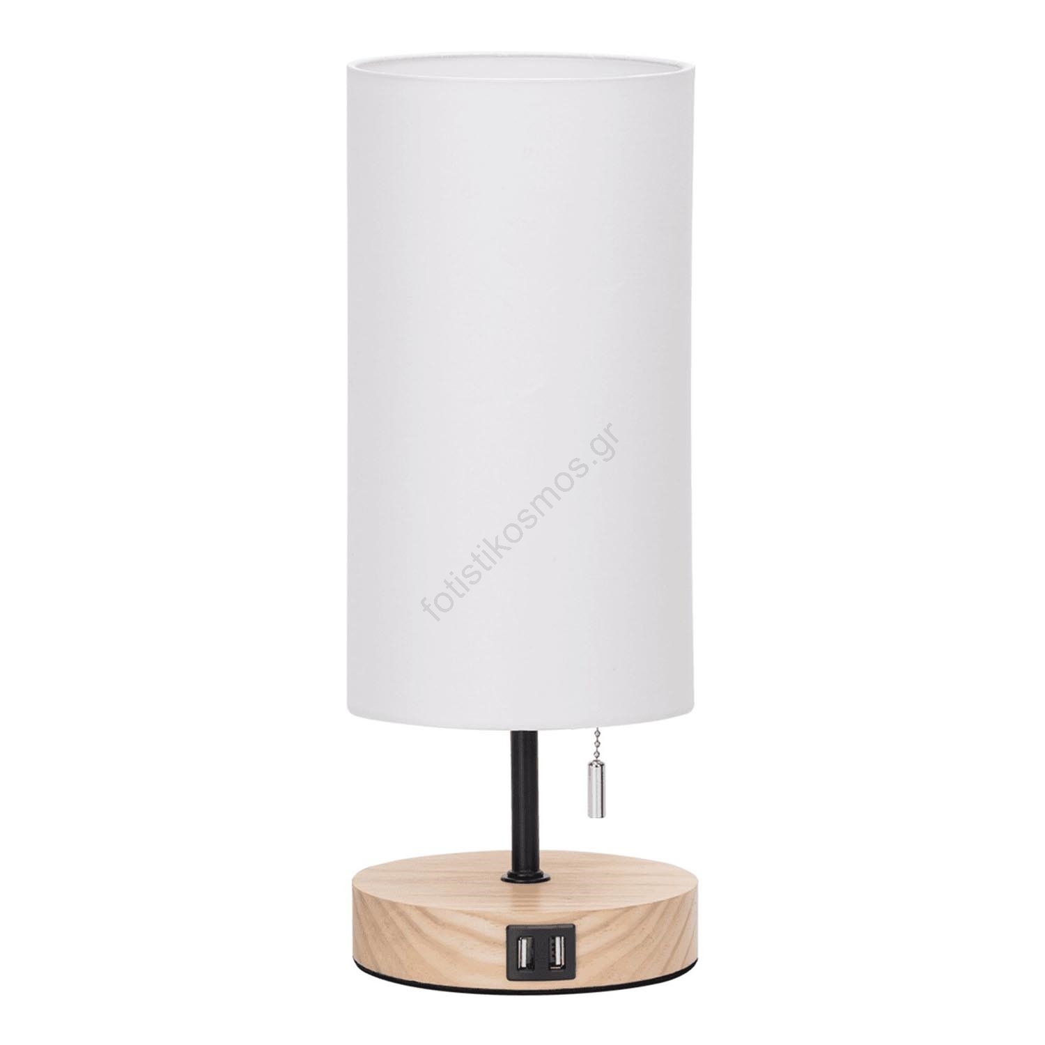 • Aigostar - Eπιτραπέζιο φωτιστικό με θύρα USB 1xE27/40W/230V μπεζ