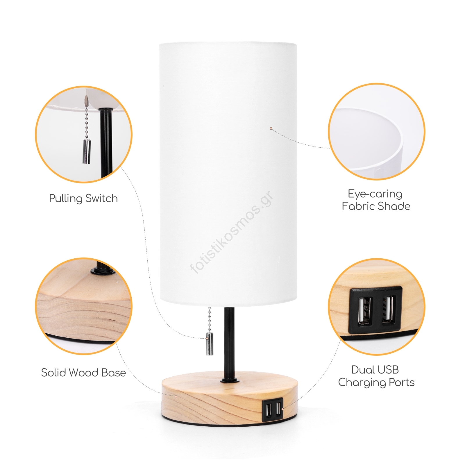 • 2x ενσωματωμένες θύρες USB στη βάση του φωτιστικού για φόρτιση κινητού τηλεφώνου.