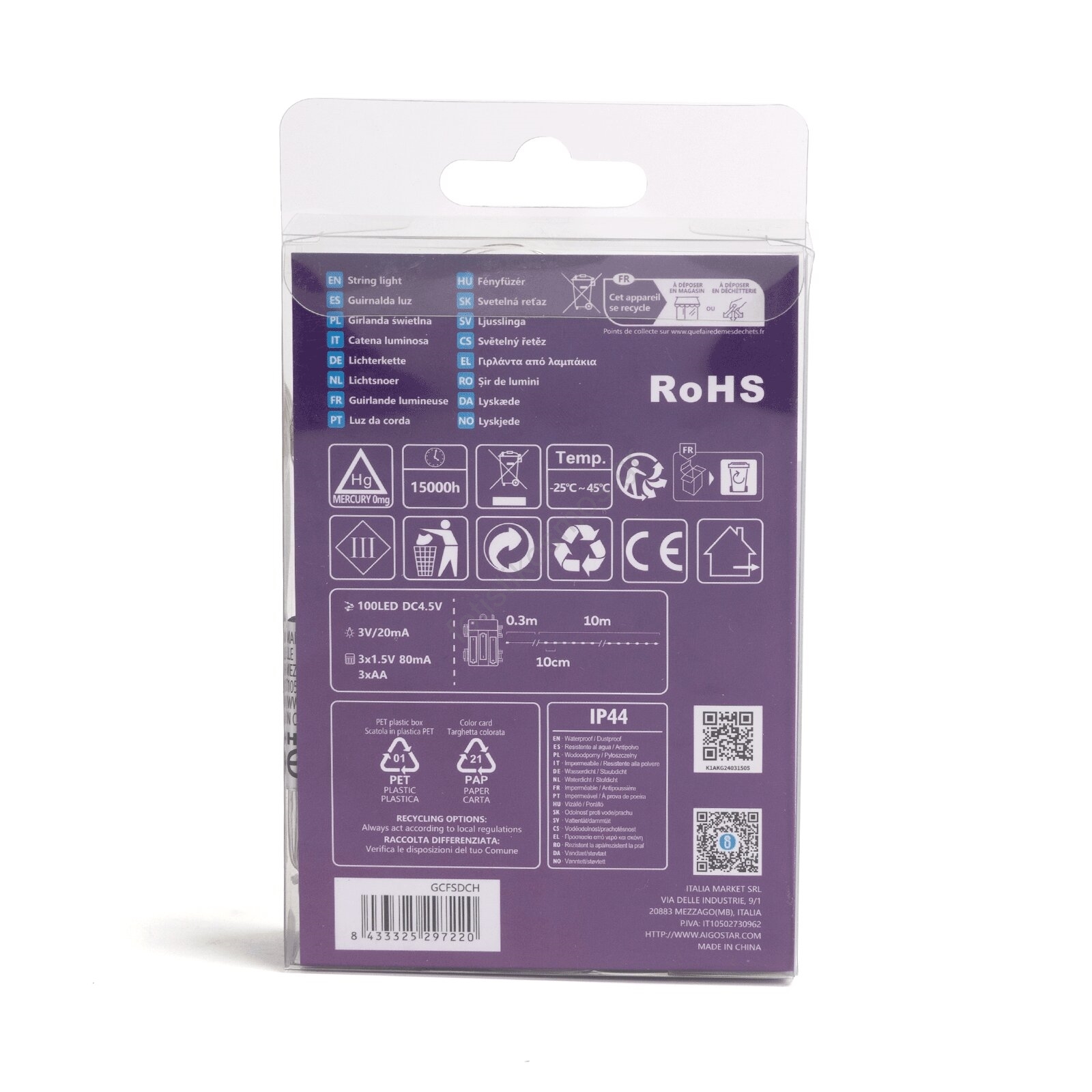 Aigostar - LED Εξωτερικό Χριστουγεννιάτικο Φωτιστικό Αλυσίδα 100xLED/8 λειτουργίες 3xAA 10,3μ IP44 ζεστό λευκό