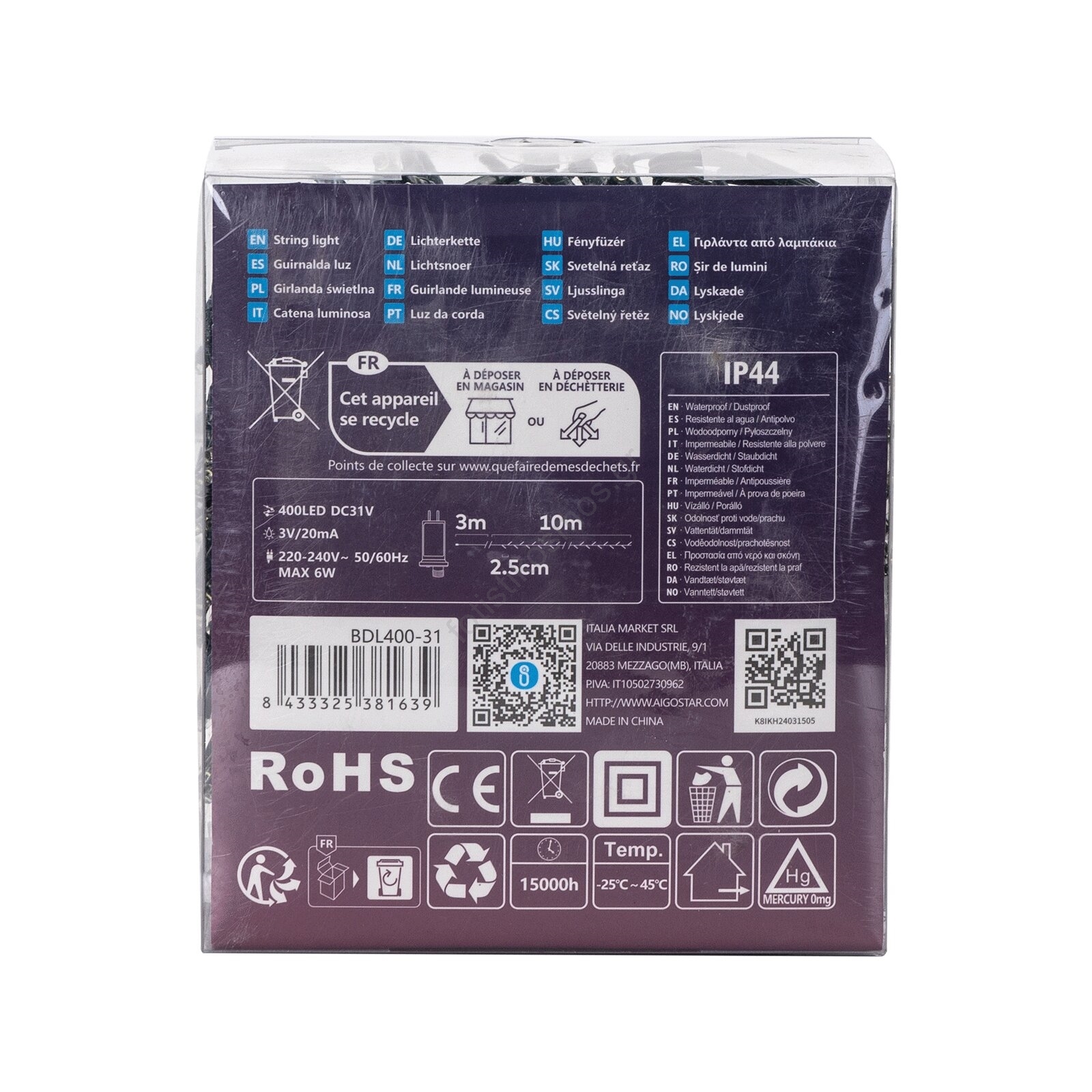 • Aigostar - LED εξωτερική γιρλάντα 400xLED/8 λειτουργίες 13m IP44 ψυχρό λευκό