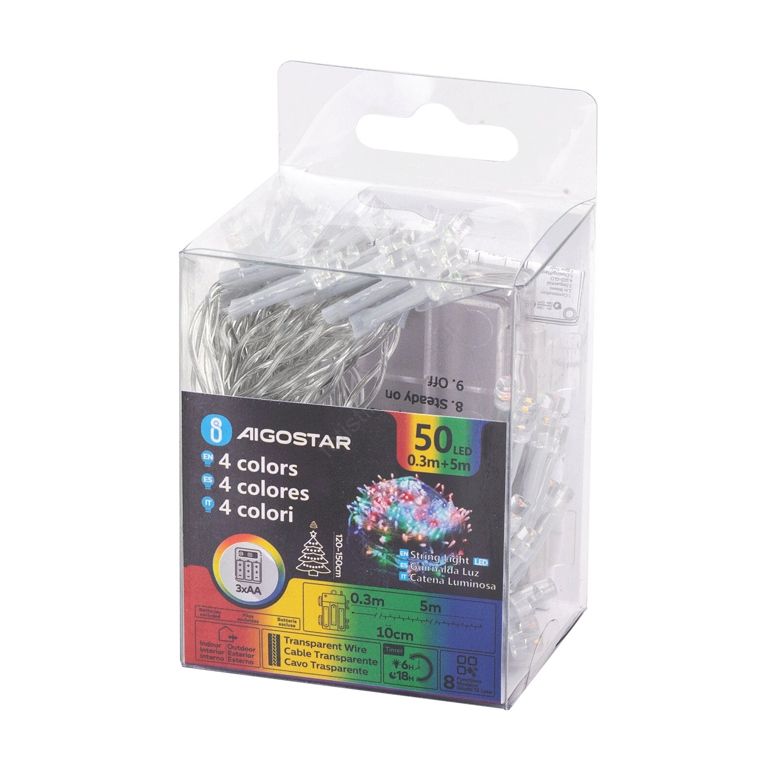 Aigostar - LED γιρλάντα εξωτερικού χώρου 50 LED/8 λειτουργίες 3xAA 5,3 m IP44 πολύχρωμη