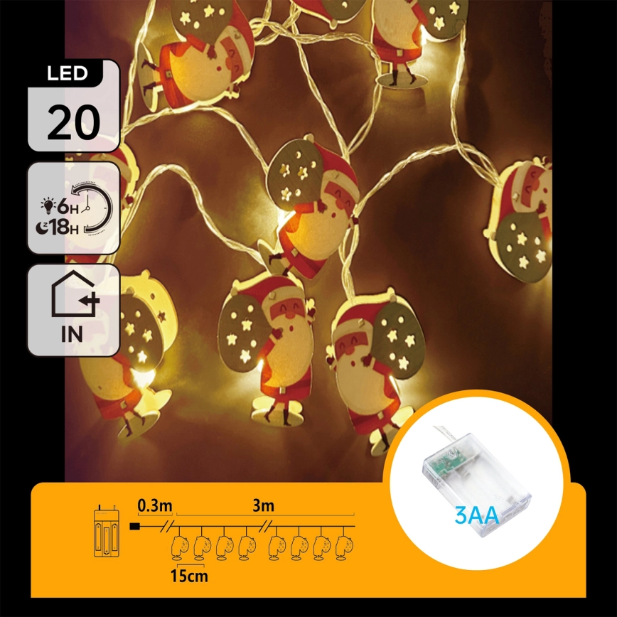 Aigostar - LED γιρλάντα 20 LED/3×AA 3 m θερμό λευκό Άγιος Βασίλης