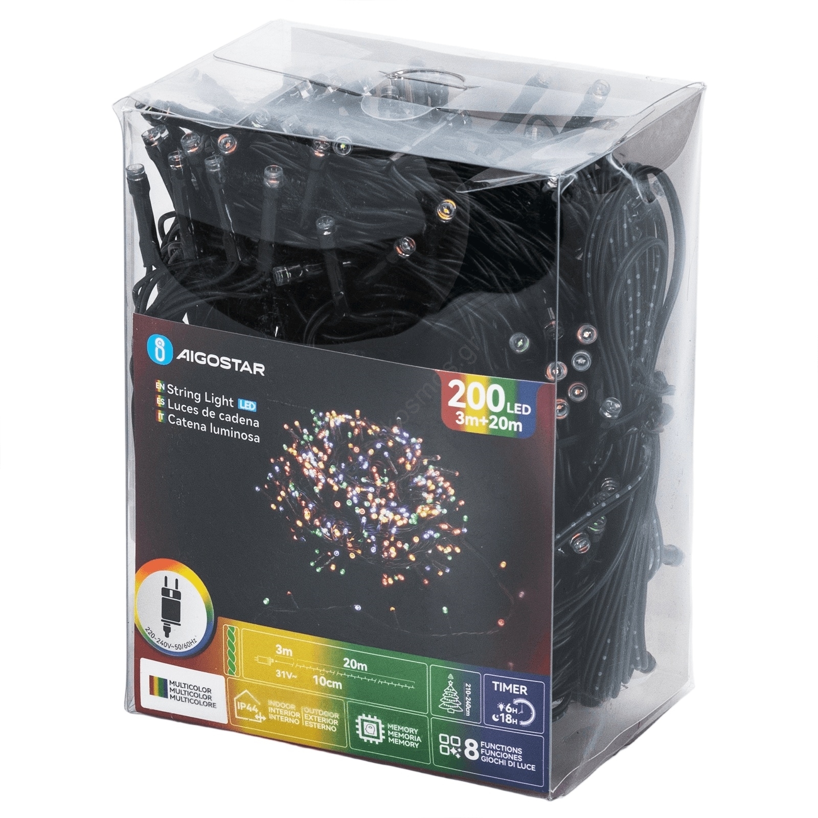 • Aigostar - LED υπαίθρια χριστουγεννιάτικη γιρλάντα 200xLED/8 λειτουργιών 20m IP44 πολύχρωμη