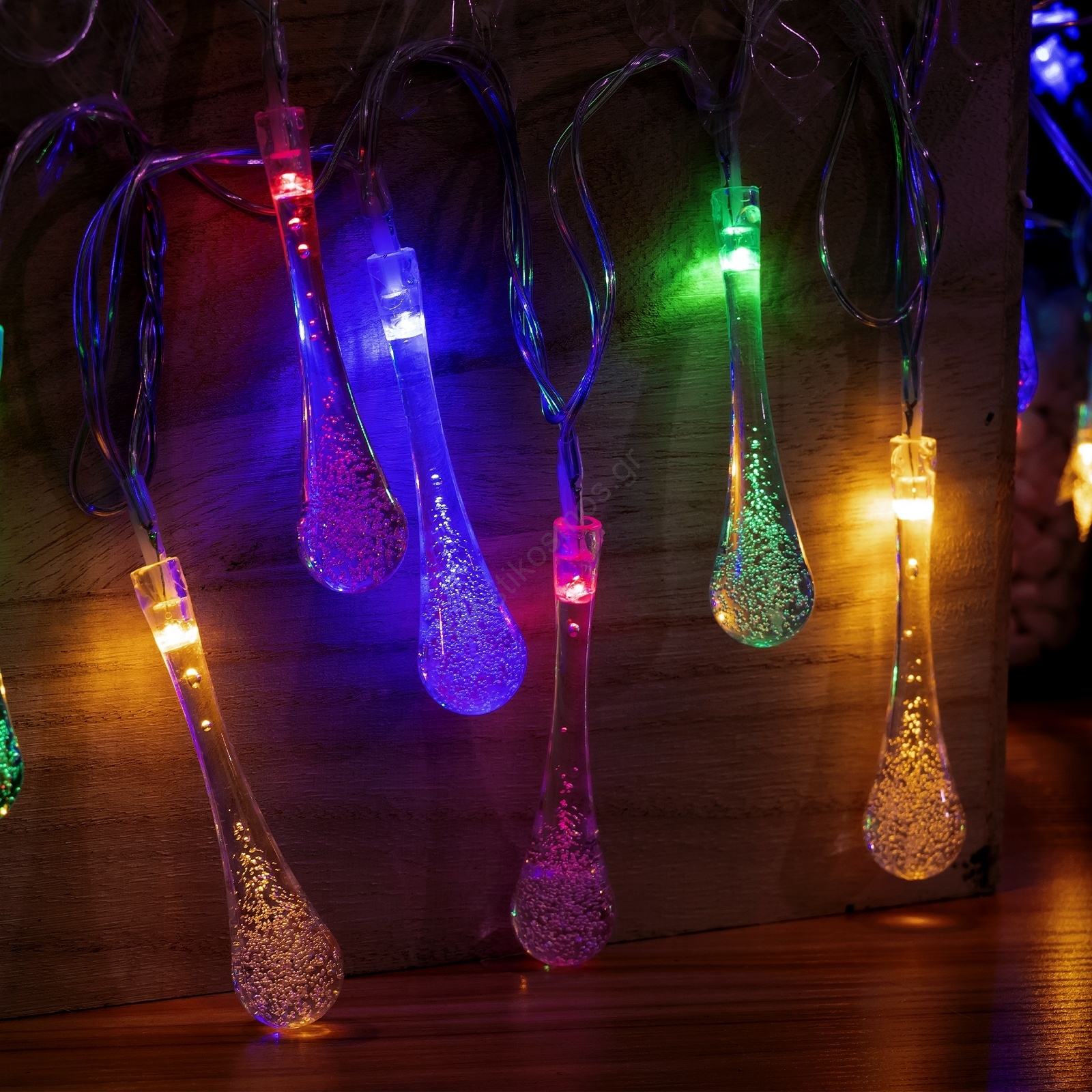 • Aigostar - Γιρλάντα LED για εξωτερικούς χώρους 25xLED, 8 λειτουργίες, 3xAA, 2,5 m, IP44, πολύχρωμες σταγόνες