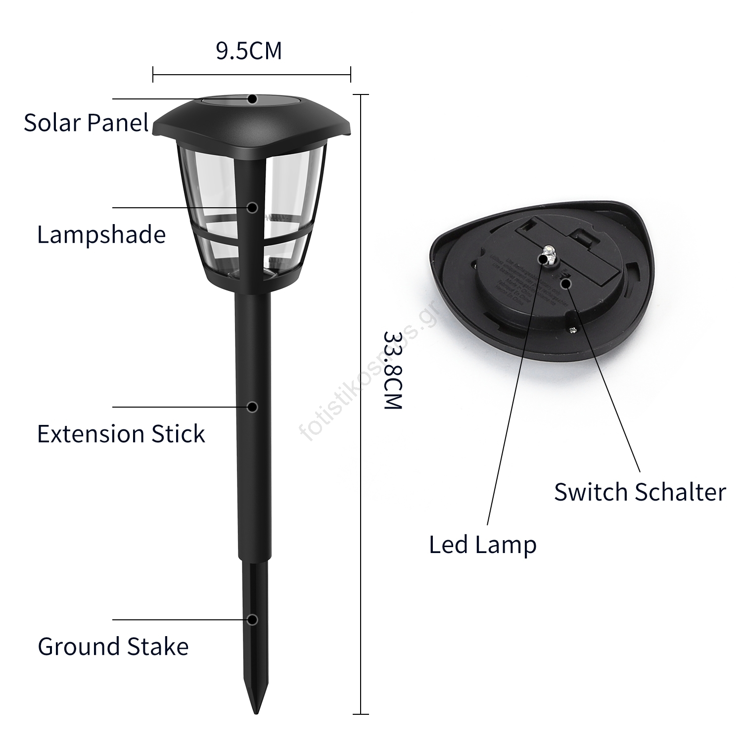 Aigostar - Σετ 12 LED ηλιακές λάμπες LED/0,06W/2V 33,8 cm 6500K 100 mAh IP44 μαύρες