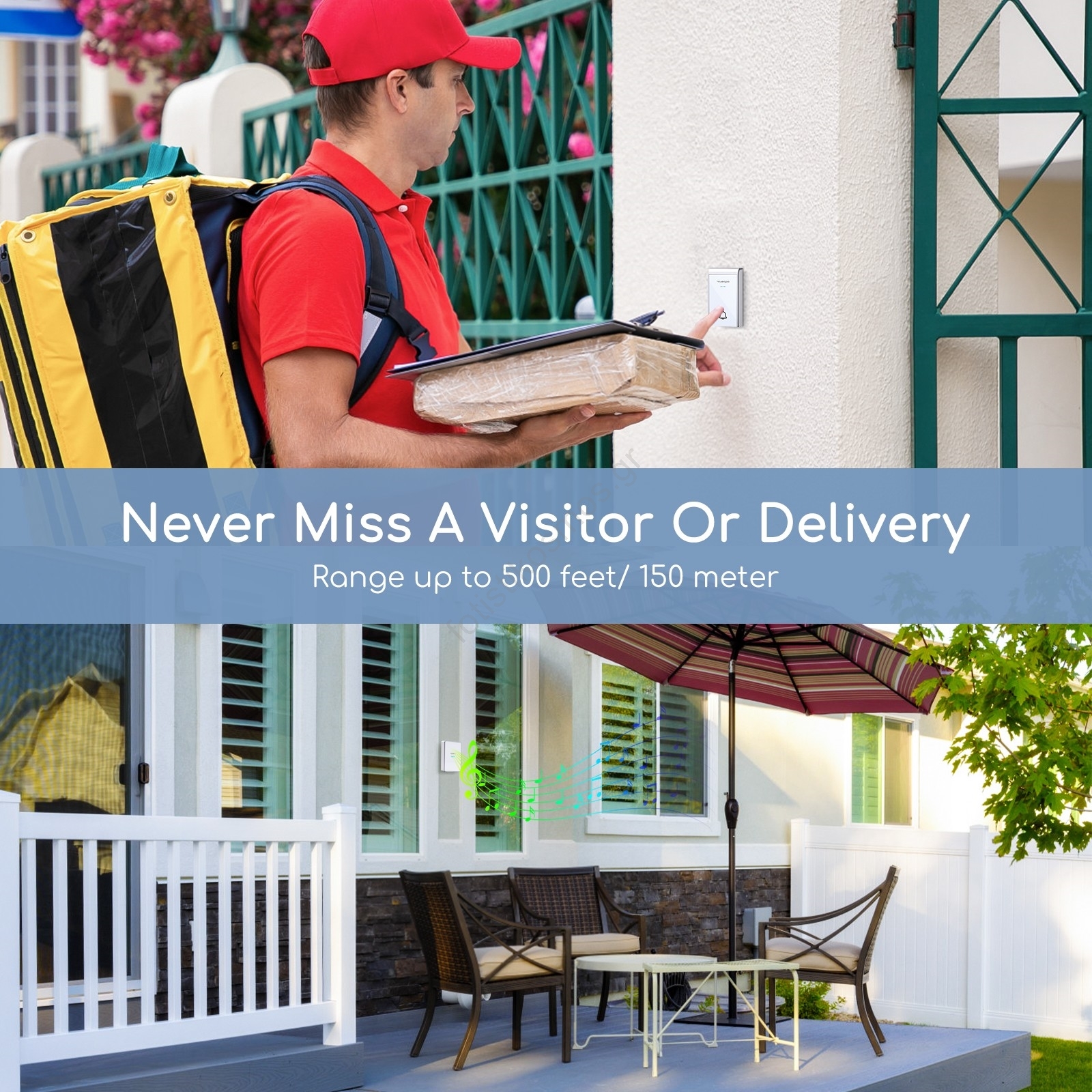 • Δύο ασύρματα κουδούνια με ένα εξωτερικό κουμπί.