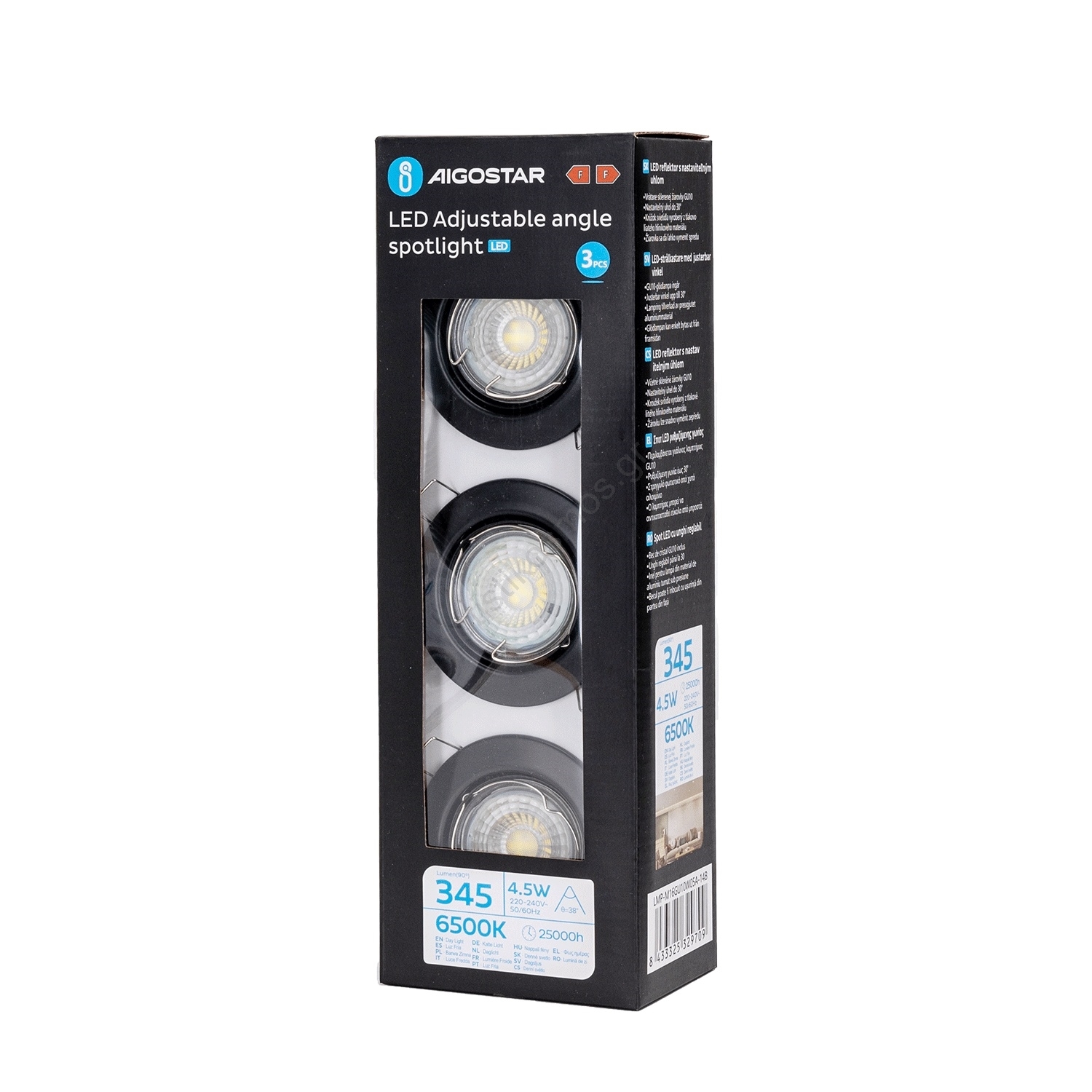 • Aigostar - Σετ 3x χωνευτό φωτιστικό LED 1xGU10/4,5W/230V 6500K μαύρο