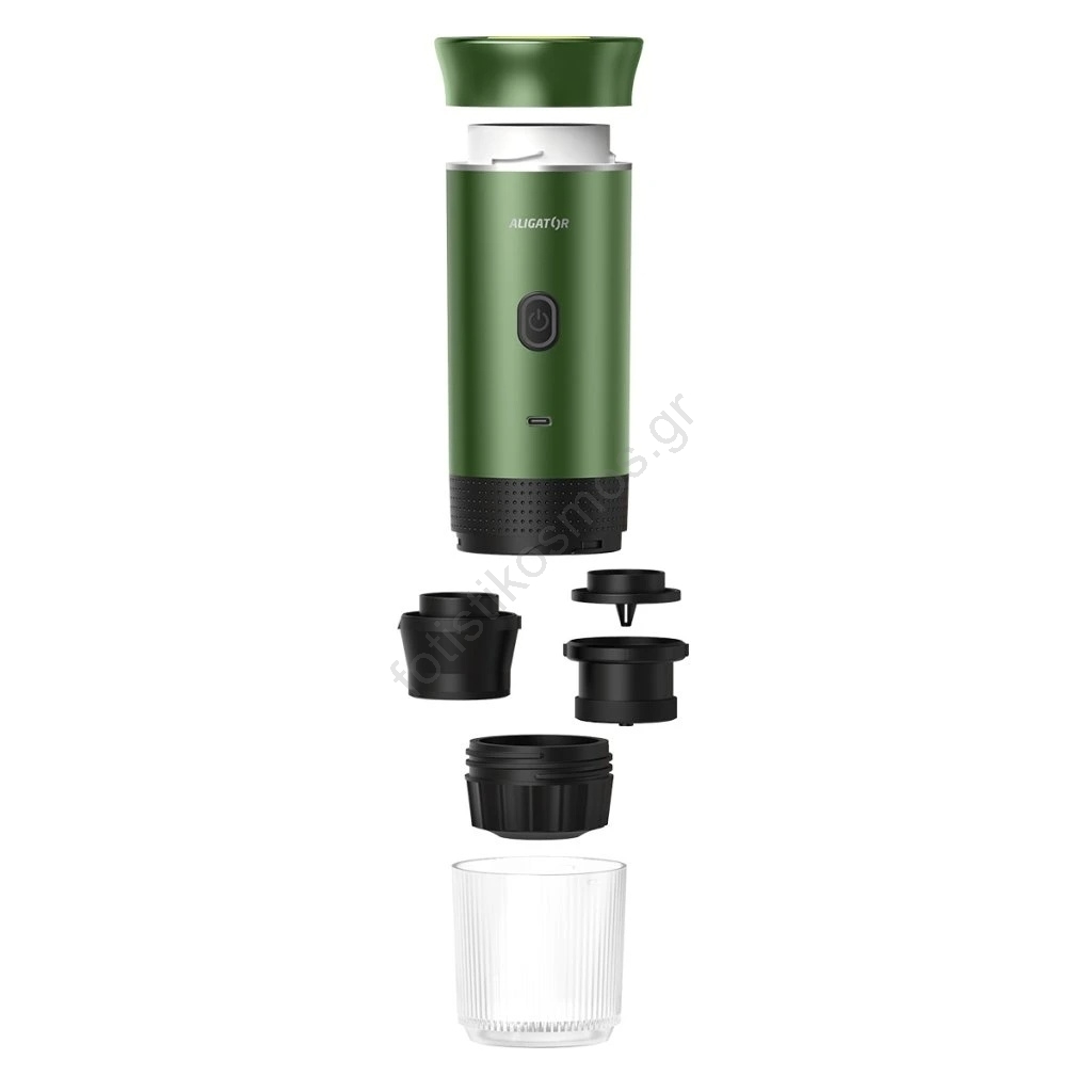 Aligator ACM003 - Φορητή επαναφορτιζόμενη καφετιέρα PortaCaffé 3 σε 1 72W/7500 mAh πράσινη