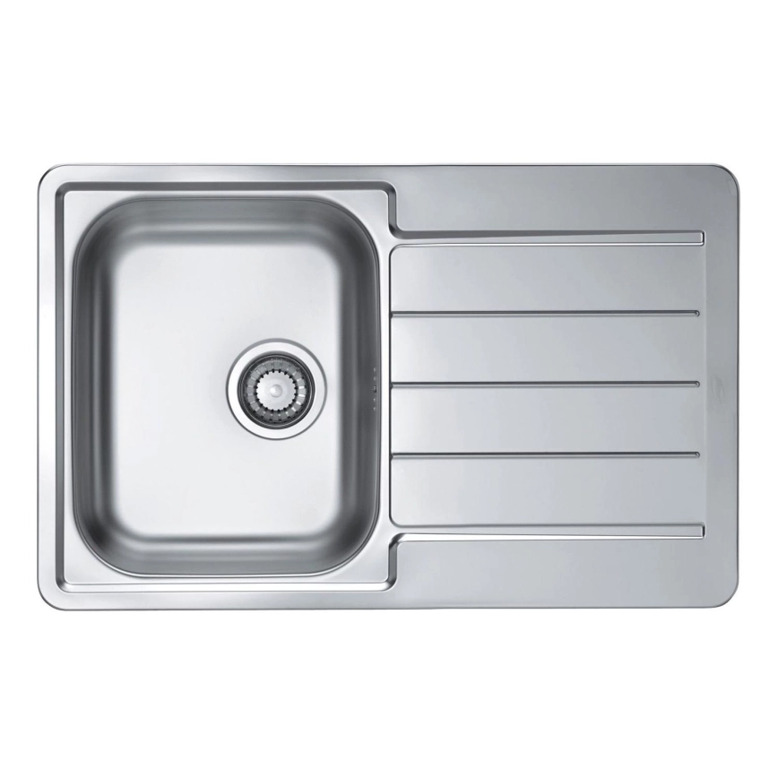 • Νεροχύτης κουζίνας από ανοξείδωτο ατσάλι με κλασικό σχεδιασμό.
