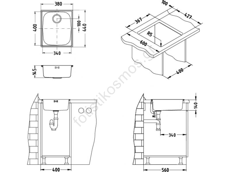 • Περιεχόμενο συσκευασίας: νεροχύτης από ανοξείδωτο ατσάλι, εξαρτήματα στερέωσης και στεγανωτικά, σιταρωτή βαλβίδα 3 1/2, σιφώνι με παροχή για σύνδεση πλυντηρίου πιάτων.