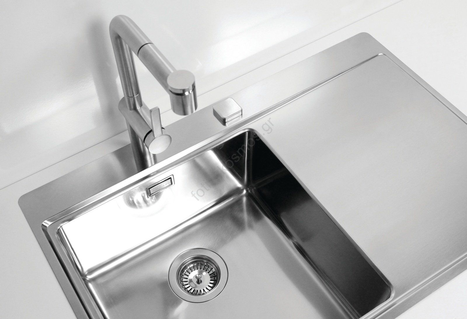 • Νεροχύτης κουζίνας από ανοξείδωτο ατσάλι με μοντέρνο σχεδιασμό.