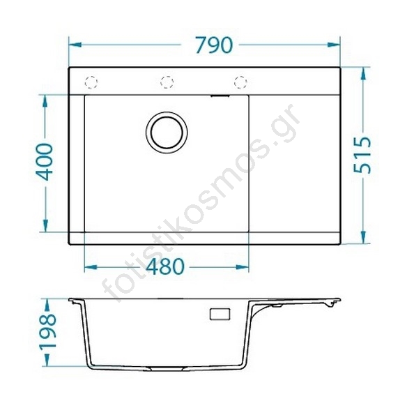 • Περιεχόμενα συσκευασίας: νεροχύτης από γρανίτη, κλιπ στερέωσης, βαλβίδα-σουρωτήρι 3 1/2, σιφόνι με σύνδεση για πλυντήριο πιάτων.