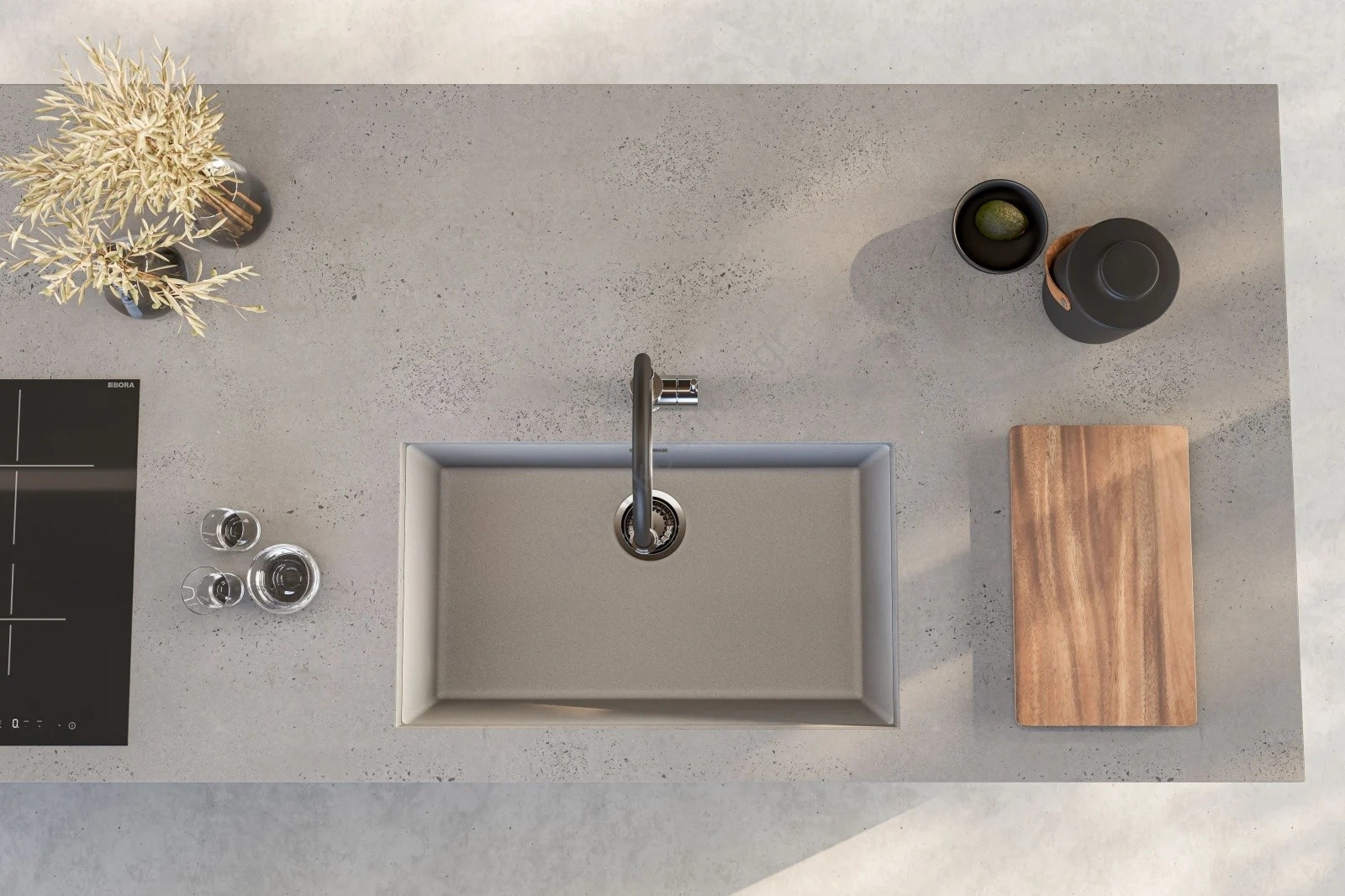 • Κατασκευασμένος από υψηλής ποιότητας γρανιτένιο υλικό, ανθεκτικό σε γρατσουνιές, λεκέδες και υψηλές θερμοκρασίες.