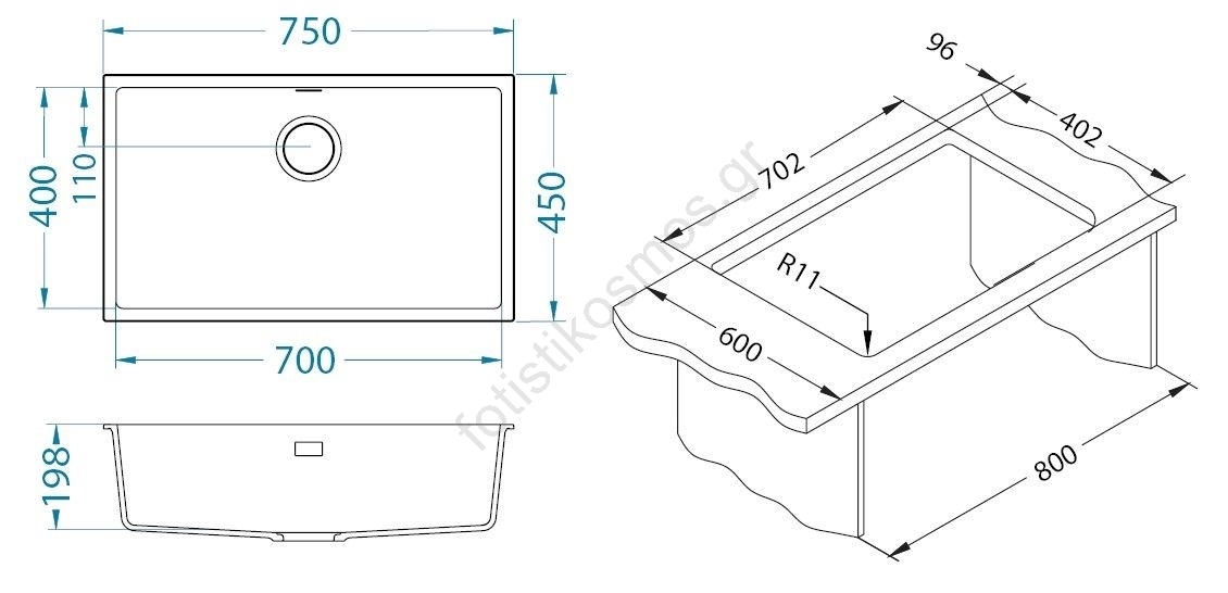 • Κατάλληλος για τοποθέτηση κάτω από τον πάγκο (undermount) ή επάνω στον πάγκο (top-mount).