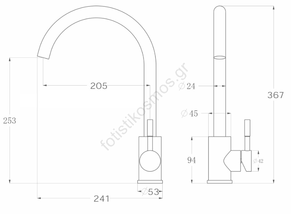 • Μπαταρία κουζίνας ενιαίας λαβής για υψηλή πίεση με περιστρεφόμενο ρουξούνι.