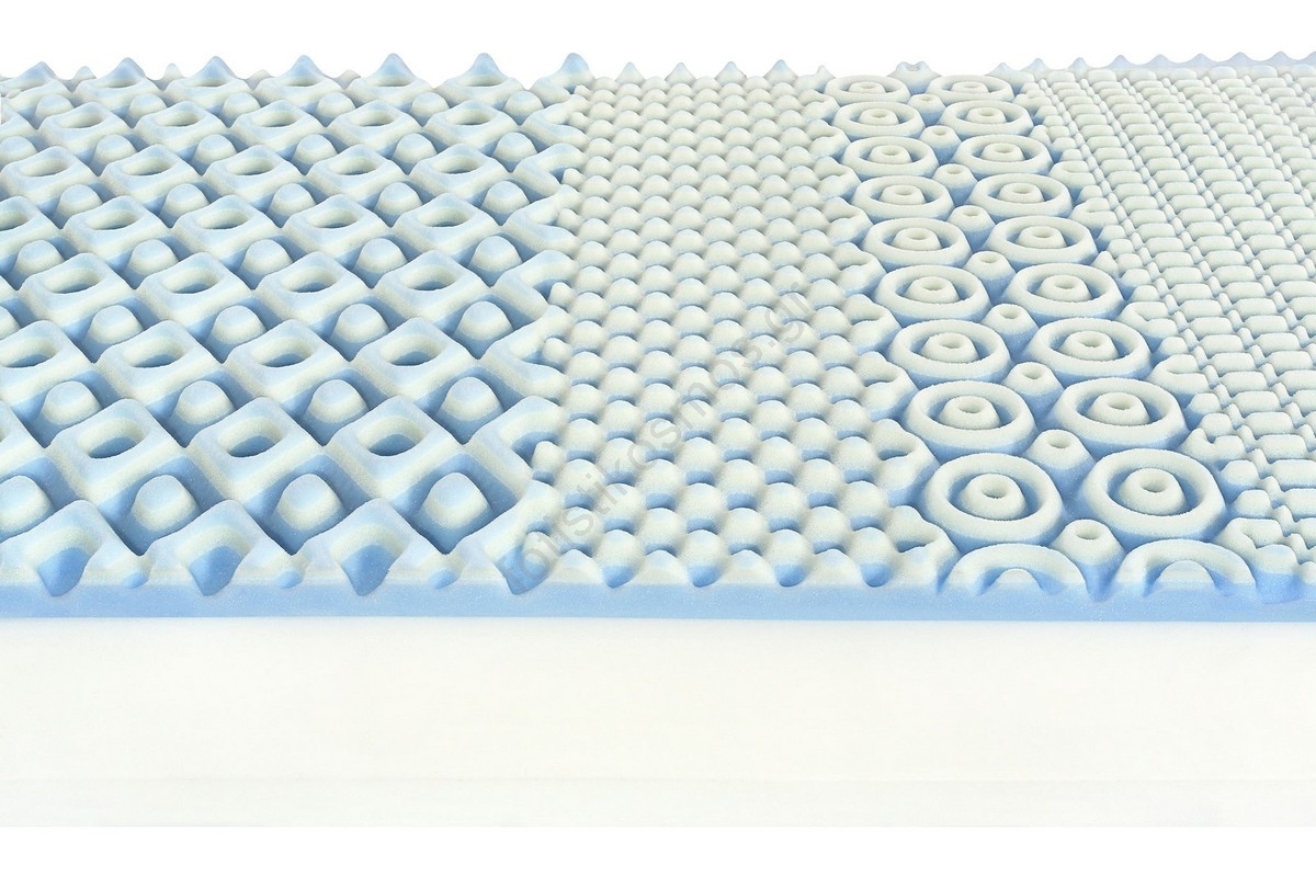 • Η επάνω στρώση με 3D αφρό μνήμης σε συνδυασμό με υβριδικό αφρό ψυχρής διαμόρφωσης – περιλαμβάνει 7-ζωνικό προφίλ ευεξίας και η κάτω στρώση από αφρό Flexi ψυχρής διαμόρφωσης με μαλακή μασάζ επιφάνεια.