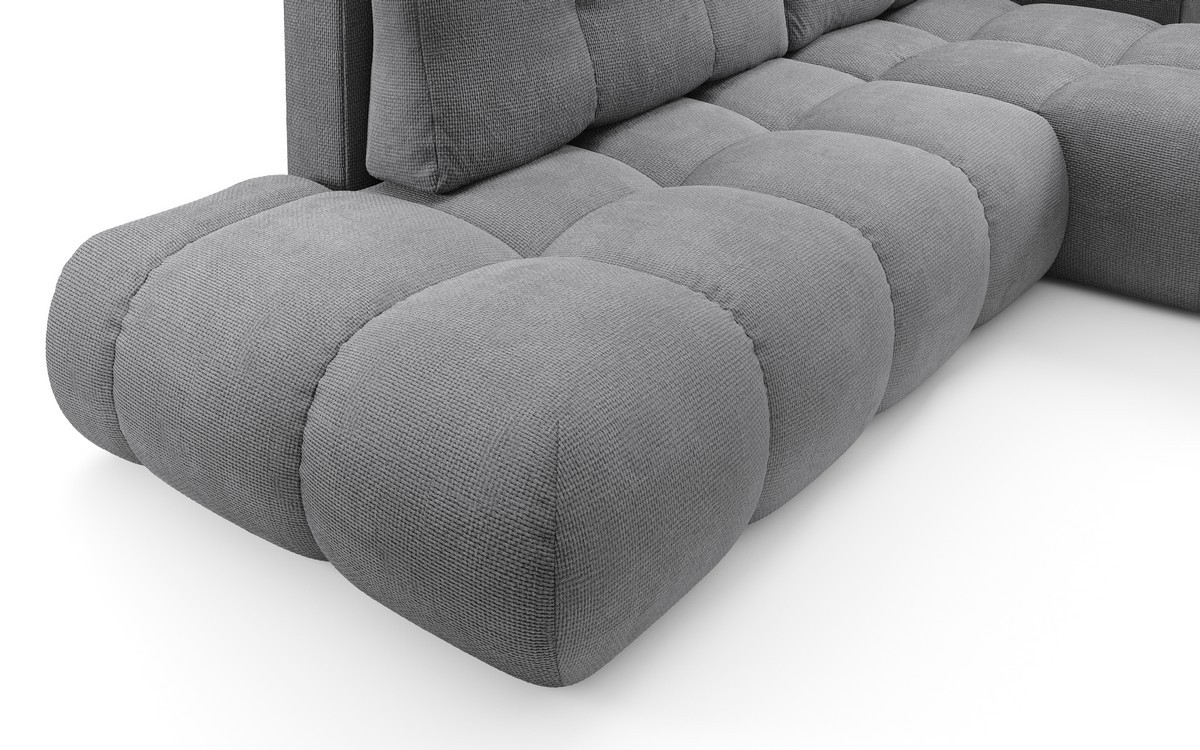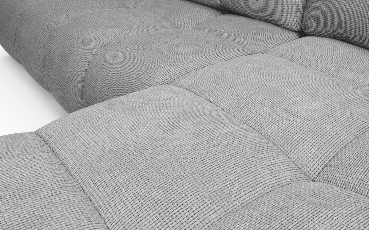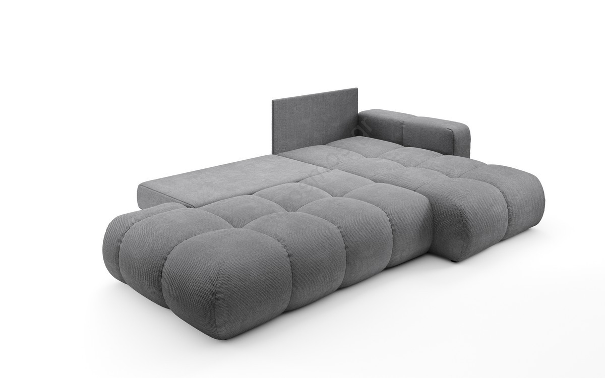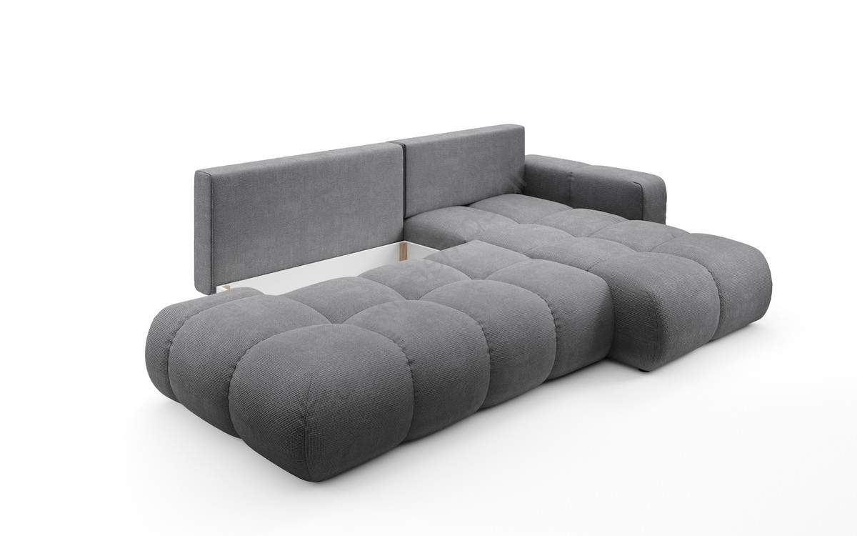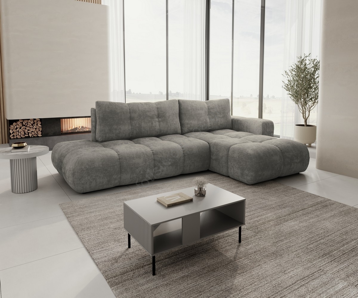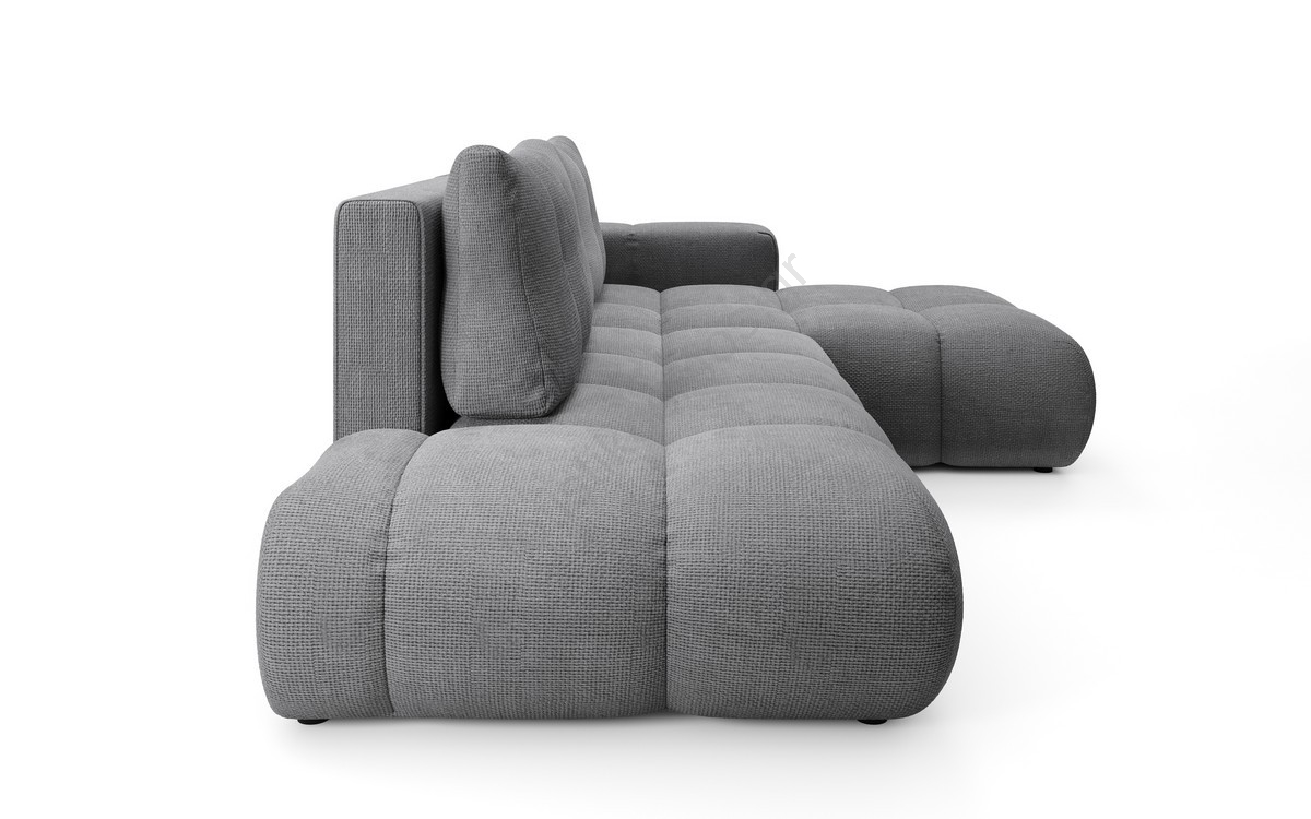 • Γωνιακή επενδεδυμένη σύνθεση καθιστικού ALMADA σε σχήμα Γ, αναδιπλούμενη με αποθηκευτικό χώρο, δεξιά, γκρι