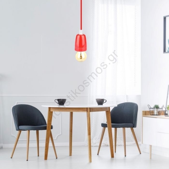 Ανάρτηση με ροζέτα και ντουί 1xE27/60W/230V κόκκινο/πορσελάνη | Fotisti kosmos