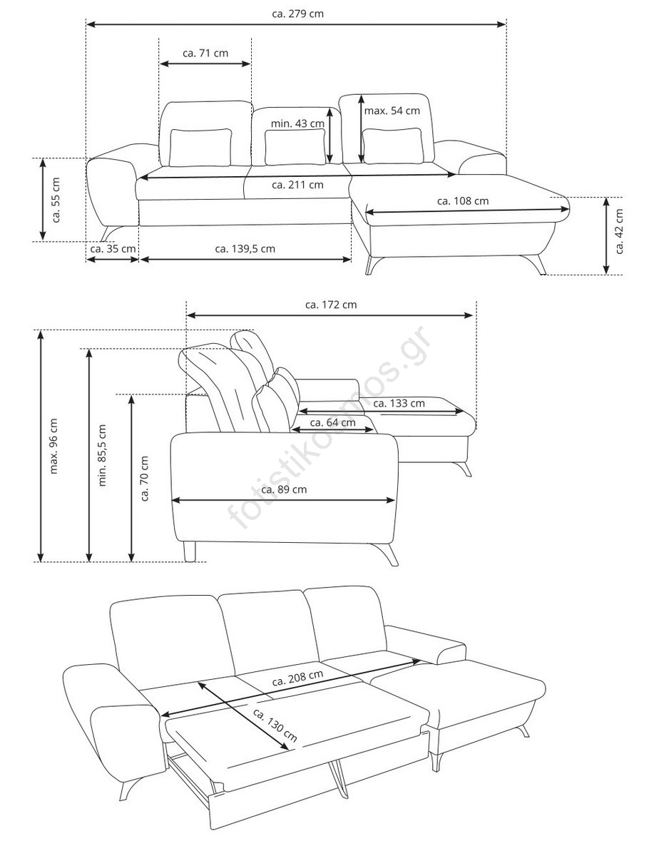 • Χάρη στη λειτουργία κρεβατιού (τύπου δελφίνι) μπορεί εύκολα να μετατραπεί σε άνετο χώρο ύπνου.