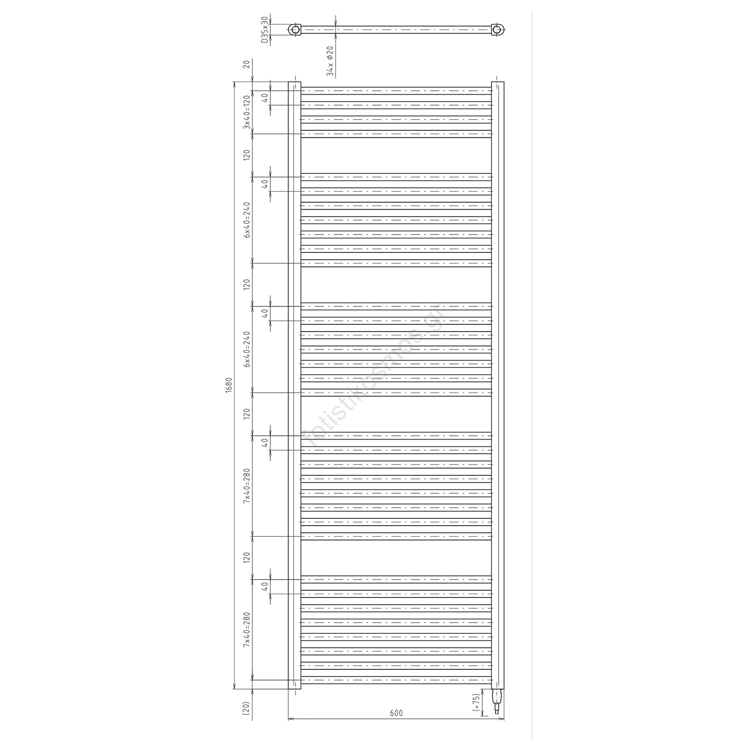 Aqualine - Ηλεκτρική πετσετοκρεμάστρα μπάνιου DIRECT-E 800W/230V 168 cm λευκό | Fotisti kosmos
