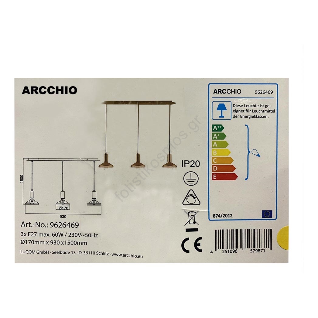 Arcchio - Κρεμαστό φωτιστικό οροφής ράγα JAIKA 3xE27/60W/230V | Fotisti kosmos