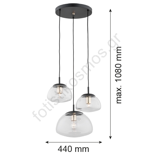 Argon 1492 - Πολύφωτο κρεμαστό TRINI 3xE27/15W/230V μάυρο | Fotisti kosmos