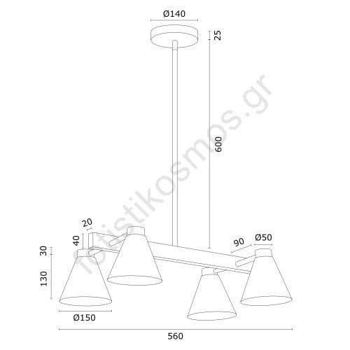 Argon 1773 -Κρεμαστό φωτιστικό οροφής AVALONE 4xE27/15W/230V λευκό/χρυσό | Fotisti kosmos