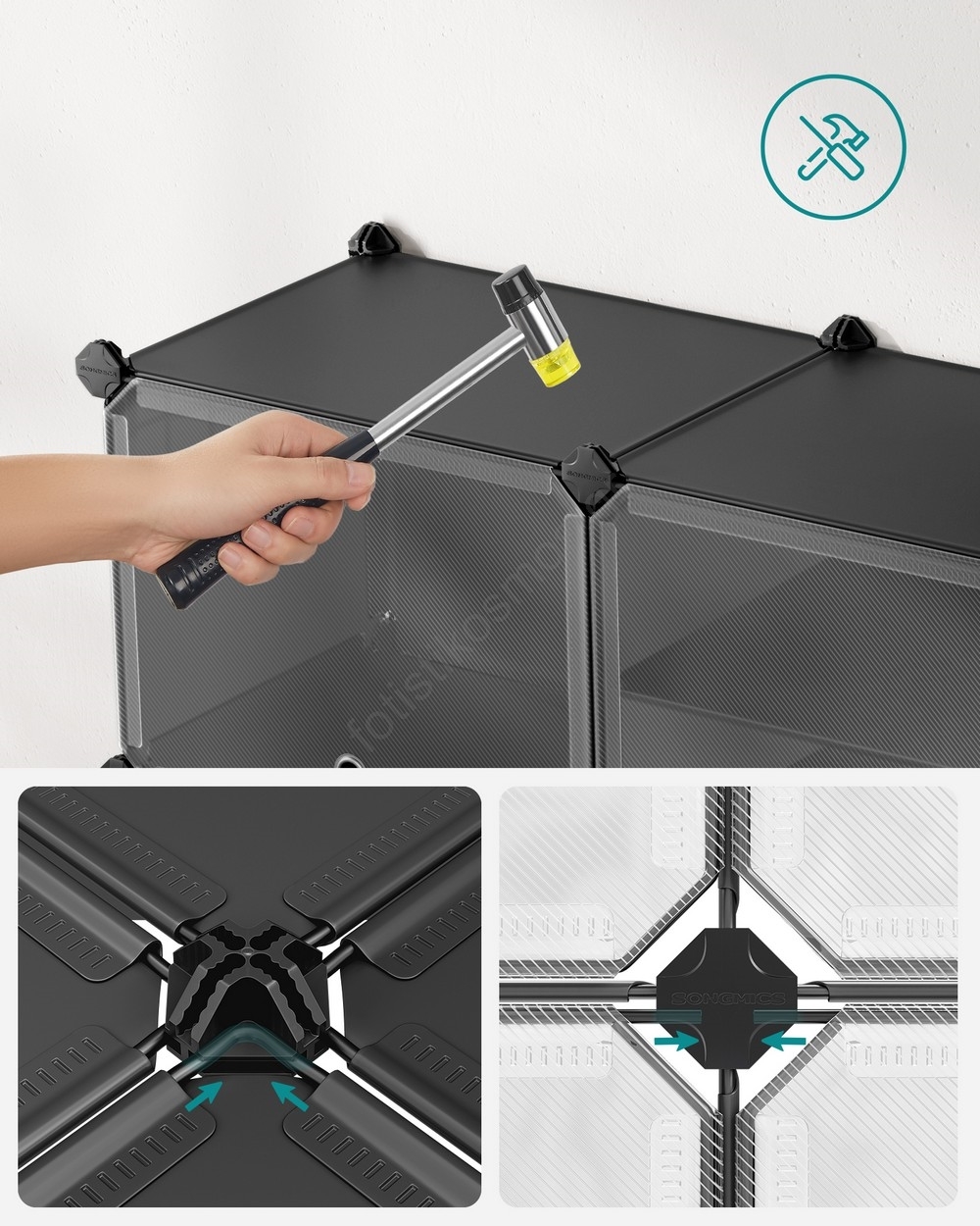 • Δημιουργήστε μεμονωμένες μονάδες, ή ακόμα και χωρίστε το σε 2 μικρά ράφια για την οργάνωση παπουτσιών, ρούχων ή ειδών προσωπικής υγιεινής στο μπάνιο ή σε οποιονδήποτε άλλο χώρο επιθυμείτε.