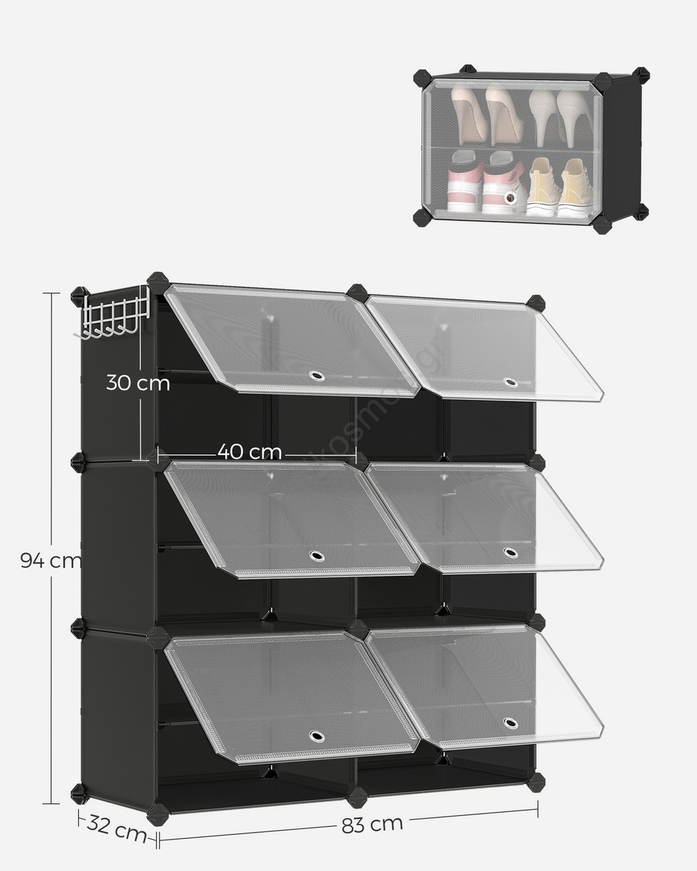 • Ο οργανωτής χωρά έως 24 ζευγάρια παπούτσια και μπορεί επίσης να χρησιμοποιηθεί για την αποθήκευση τσαντών και ρούχων.