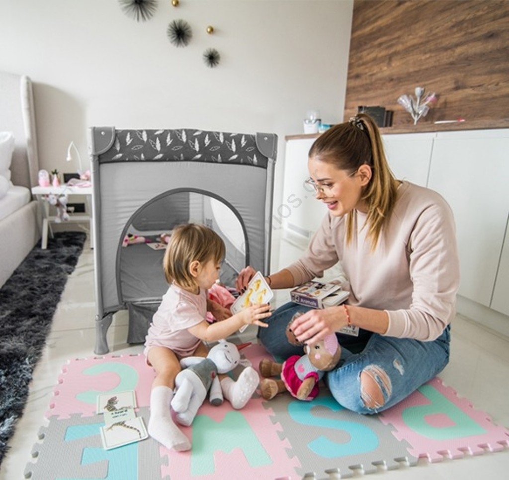 • Το παρκοκρέβατο διαθέτει ένα μοναδικό σύστημα διπλού κλειδώματος που το εμποδίζει να αναδιπλωθεί μόνο του.