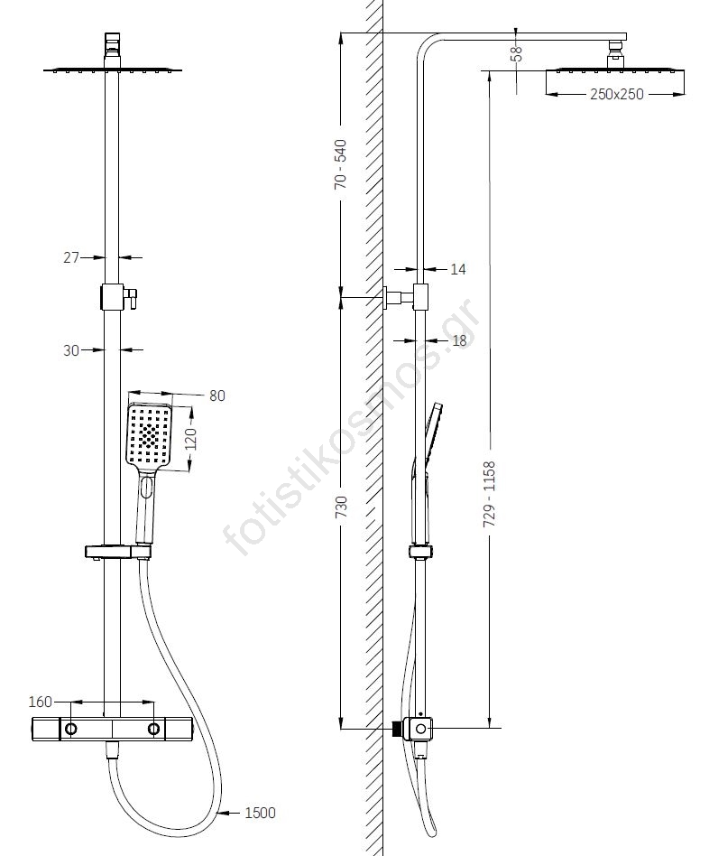 • Το σετ περιλαμβάνει θερμοστατική μπαταρία από μασίφ ορείχαλκο.