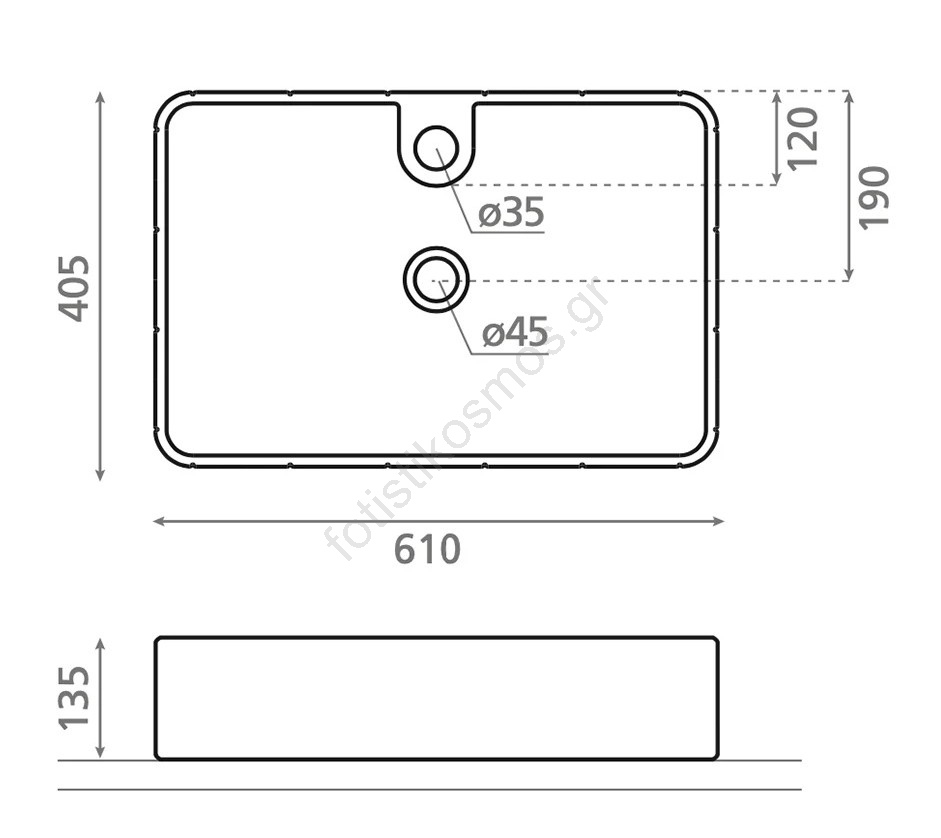 • Ο νιπτήρας μπορεί να τοποθετηθεί πάνω σε πάγκο.