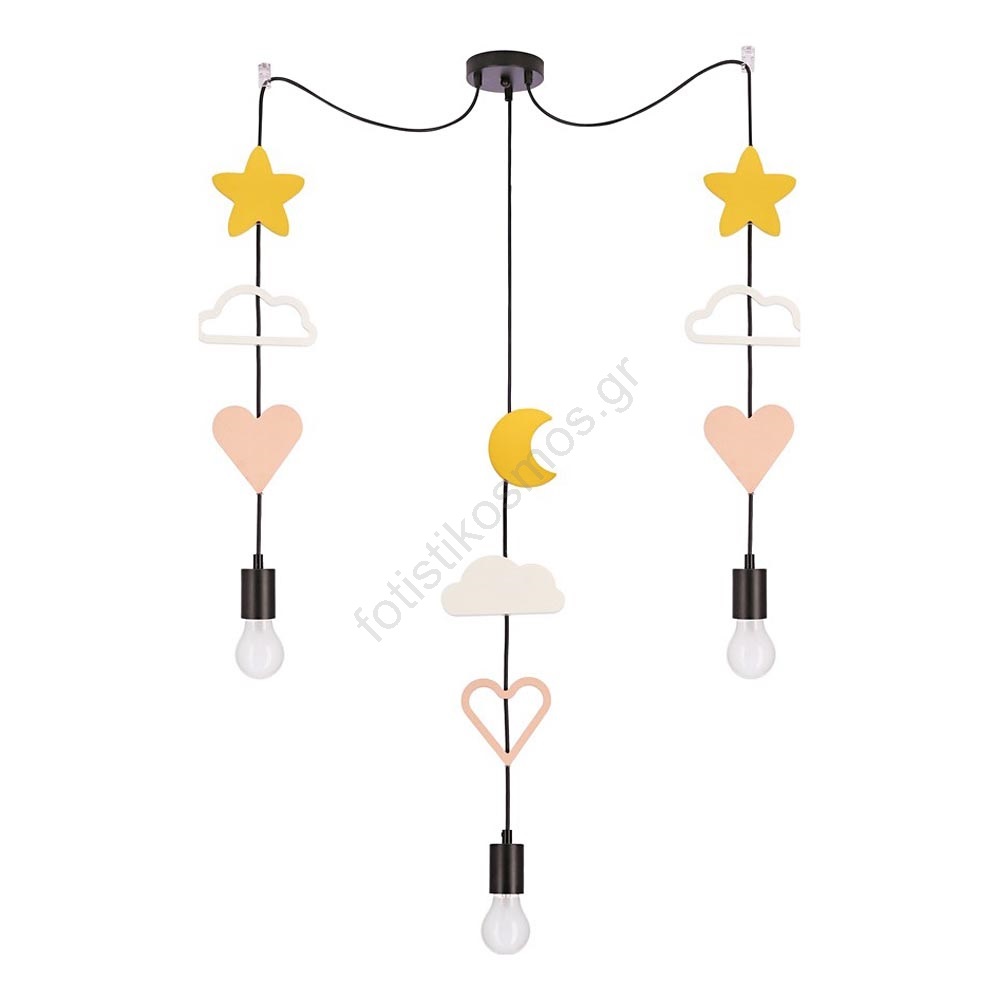 Παιδικό κρεμαστό φωτιστικό με καλώδιο TRIO 3xE27/20W/230V κίτρινο/λευκό/ροζ | Fotisti kosmos
