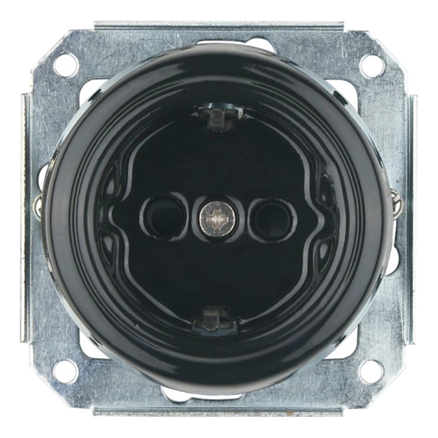 Bohemia-Design- Πορσελάνη. Ρετρό οικιακή πρίζα SCHUKO χωρίς πλαίσιο 250V/16A, μαύρη | Fotisti kosmos