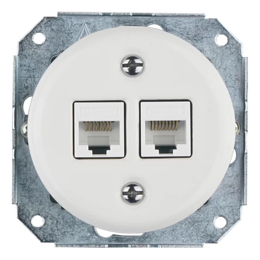 Bohemia-Design -Πορσελάνινη ρετρό υποδοχή Ethernet χωρίς πλαίσιο 2x CAT.5E λευκή | Fotisti kosmos