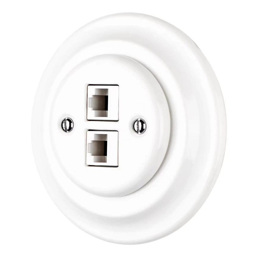 Bohemia-Design - Πορσελάνινη ρετρό υποδοχή Ethernet με πλαίσιο 2x CAT.5E λευκή | Fotisti kosmos