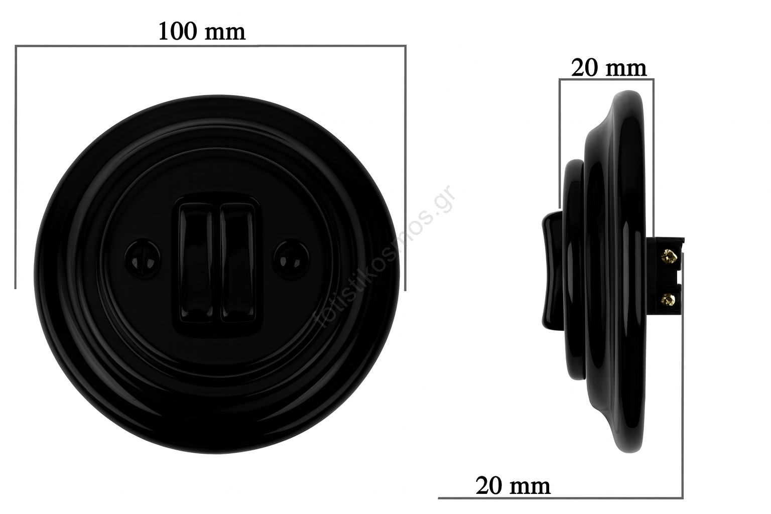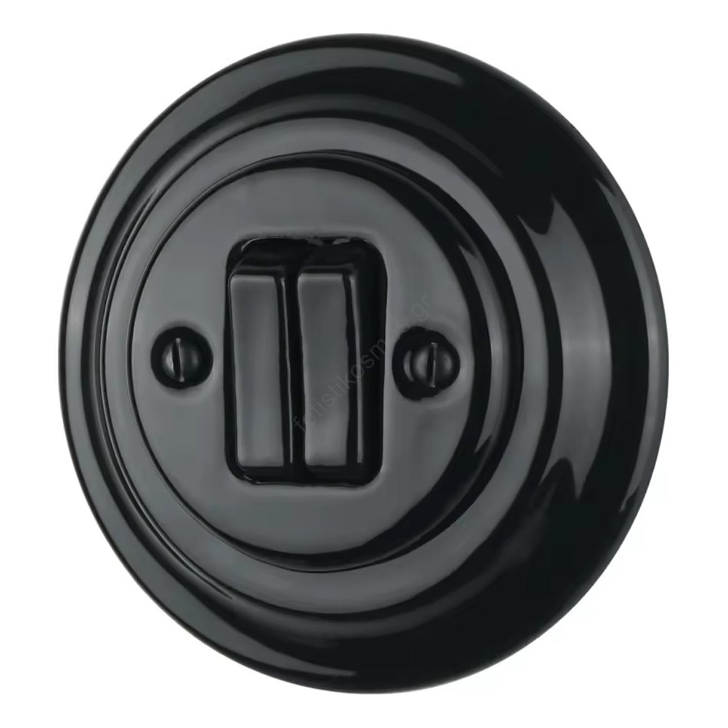 Bohemia-Design - Πορσελάνινος ρετρό διπλός διακόπτης με πλαίσιο αρ. 5, μαύρος | Fotisti kosmos