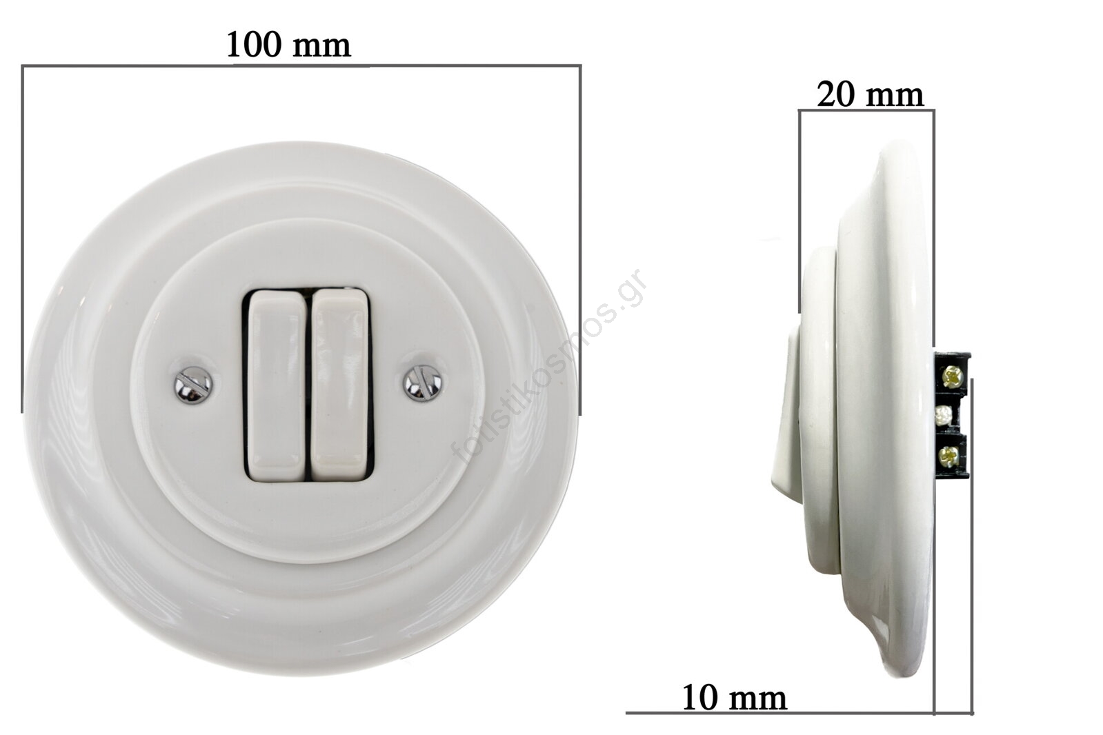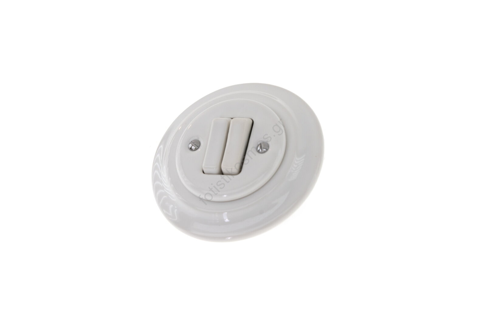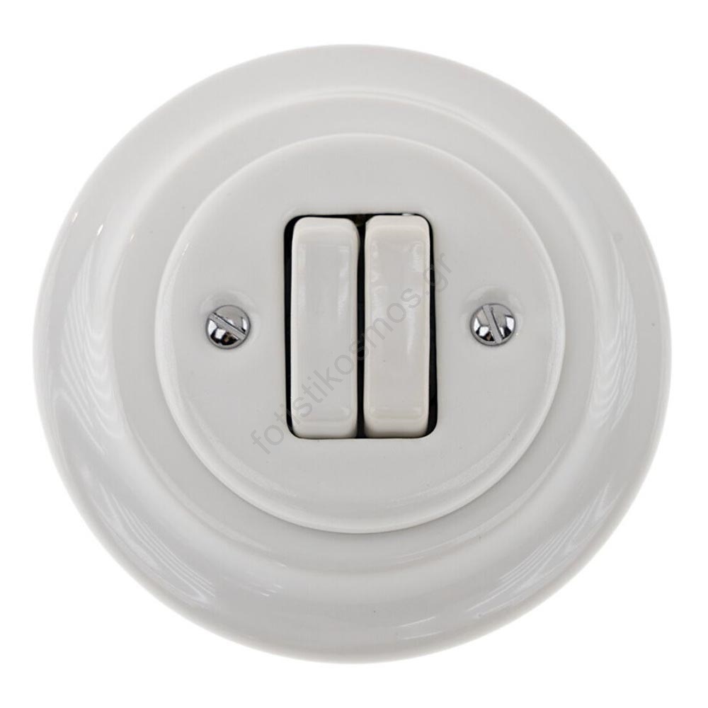 Bohemia-Design - Πορσελάνινος ρετρό διπλός διακόπτης με πλαίσιο αρ. 5, σε λευκό | Fotisti kosmos