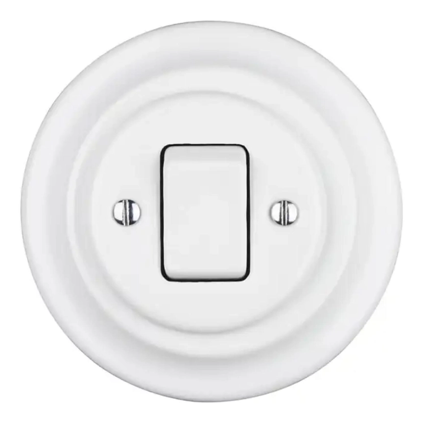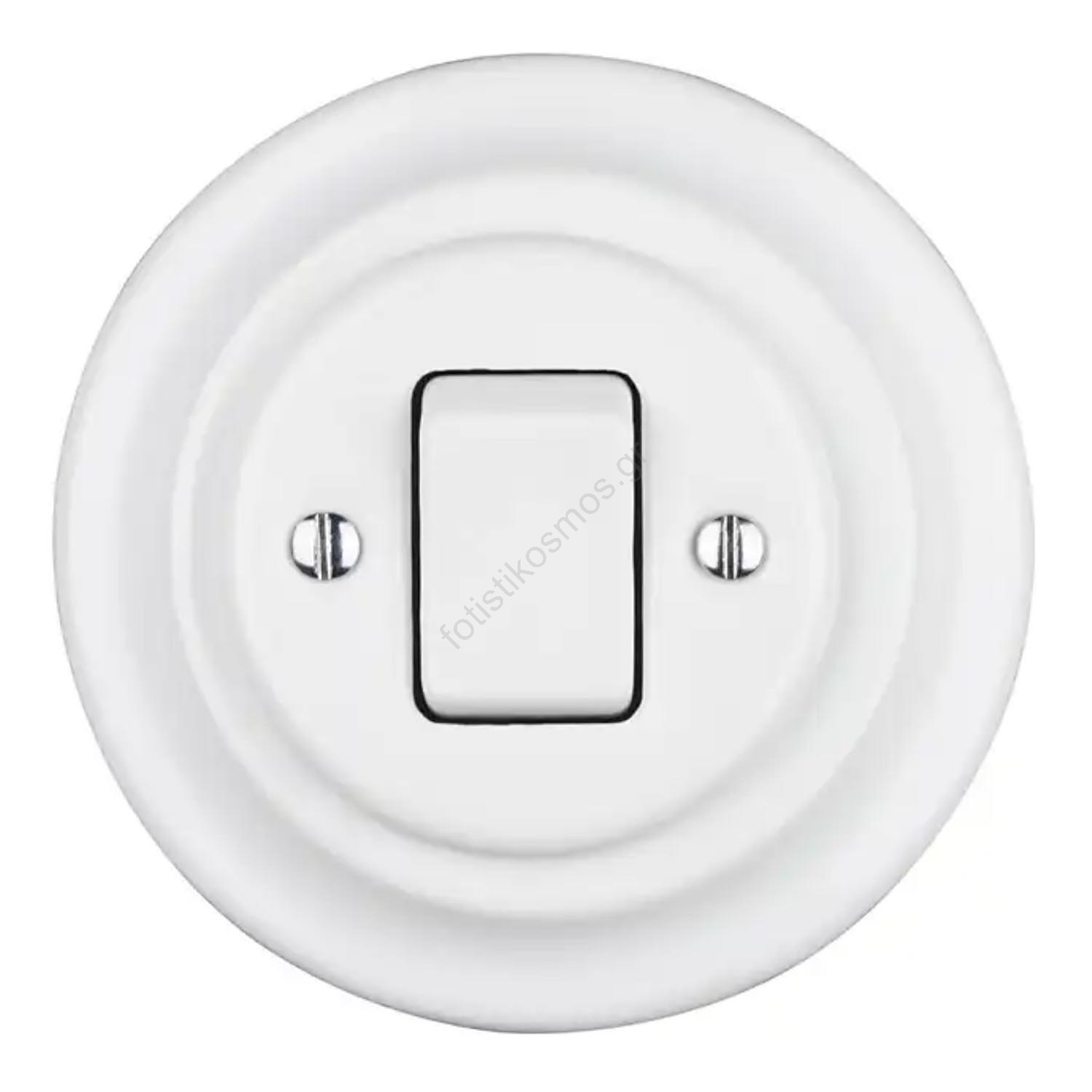 Bohemia-Design - Πορσελάνινος ρετρό μονός διακόπτης με πλαίσιο αρ. 7 σε λευκό | Fotisti kosmos