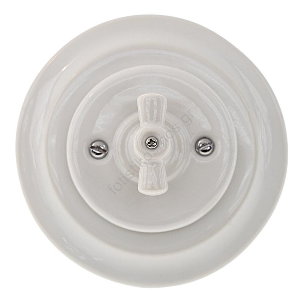 Bohemia-Design - Πορσελάνινος ρετρό περιστροφικός διακόπτης με πλαίσιο αρ. 1 λευκό | Fotisti kosmos
