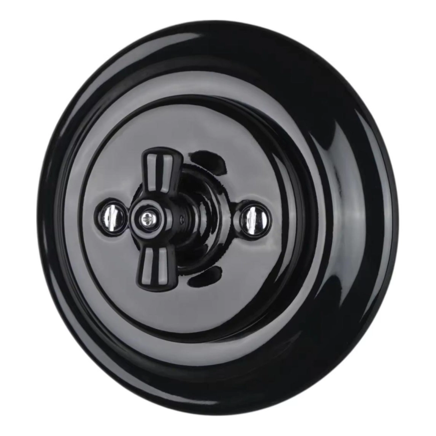 Bohemia-Design - Πορσελάνινος ρετρό περιστροφικός διακόπτης με πλαίσιο αρ. 7 μαύρος | Fotisti kosmos