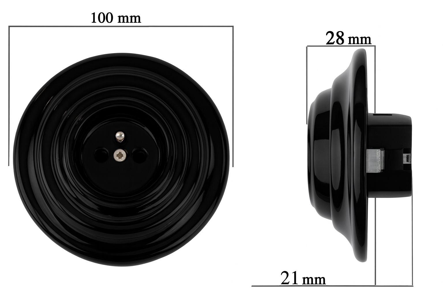 Bohemia-Design - Πορσελάνινη ρετρό οικιακή πρίζα με πλαίσιο 250V/16A μαύρη | Fotisti kosmos