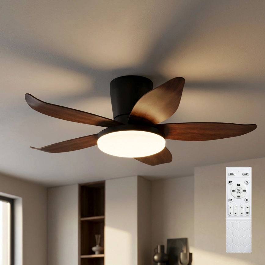 • Brilagi - Ανεμιστήρας οροφής LED με ρύθμιση φωτεινότητας, 32W, 230V, 95 cm, μαύρο/καφέ + τηλεχειριστήριο