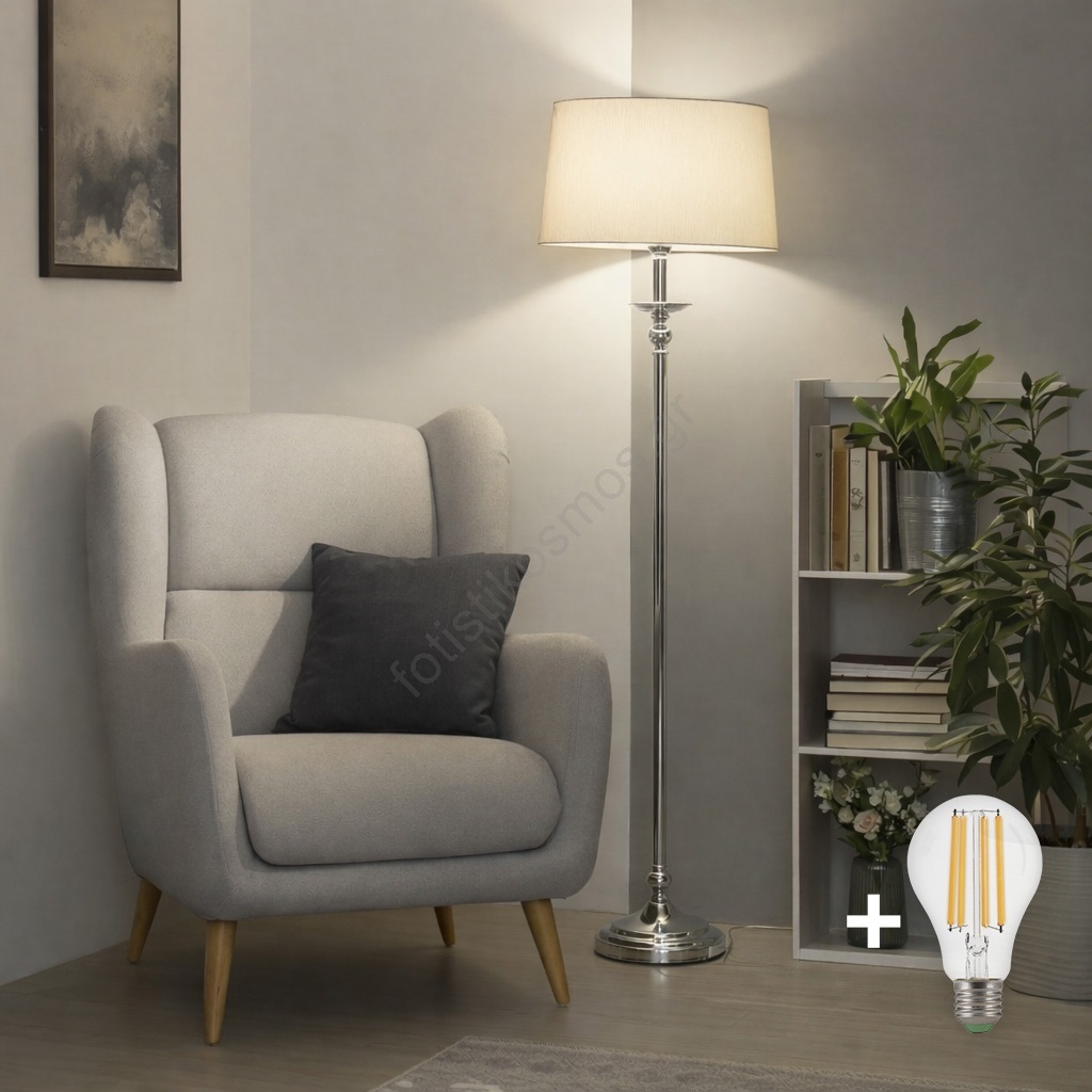 • Brilagi - Επιδαπέδιο φωτιστικό LED CERIA 1xE27/60W/230V, διάμετρος 45 cm, γυαλιστερό χρώμιο/μπεζ