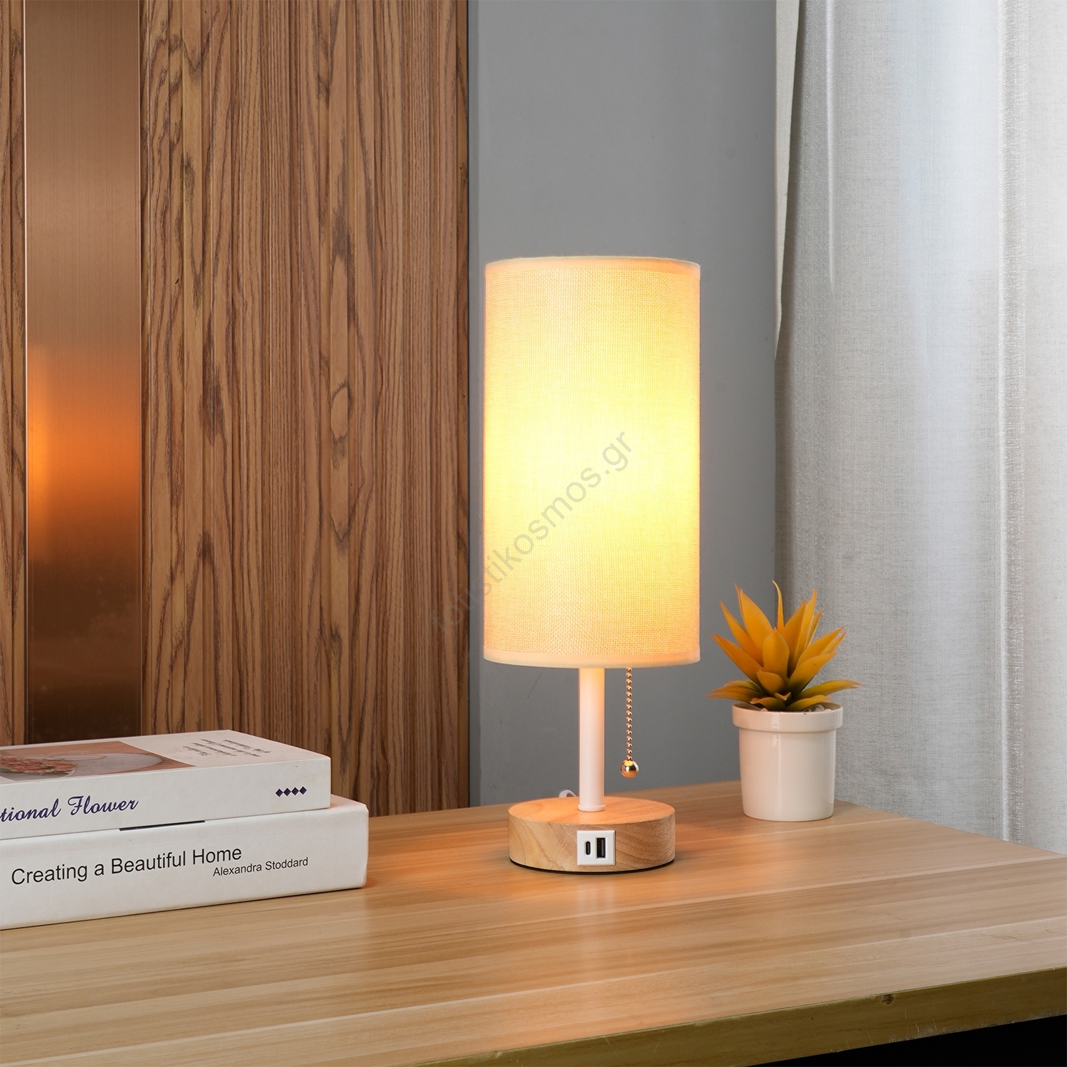 • Brilagi - Επιτραπέζιο φωτιστικό με θύρα USB TABLON 1xE27/25W/230V δρυς/λευκό/μπεζ