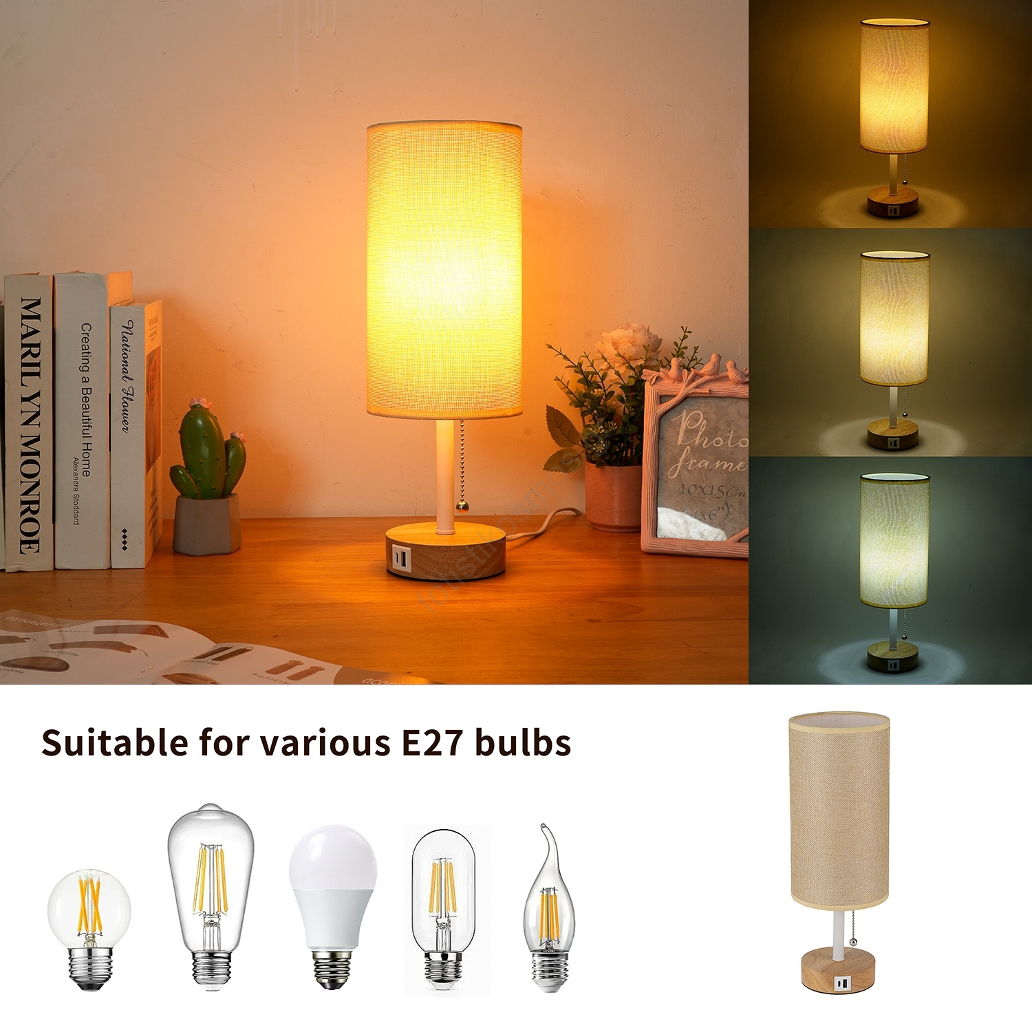 • Brilagi - Επιτραπέζιο φωτιστικό με θύρα USB TABLON 1xE27/25W/230V δρυς/λευκό/κρεμ