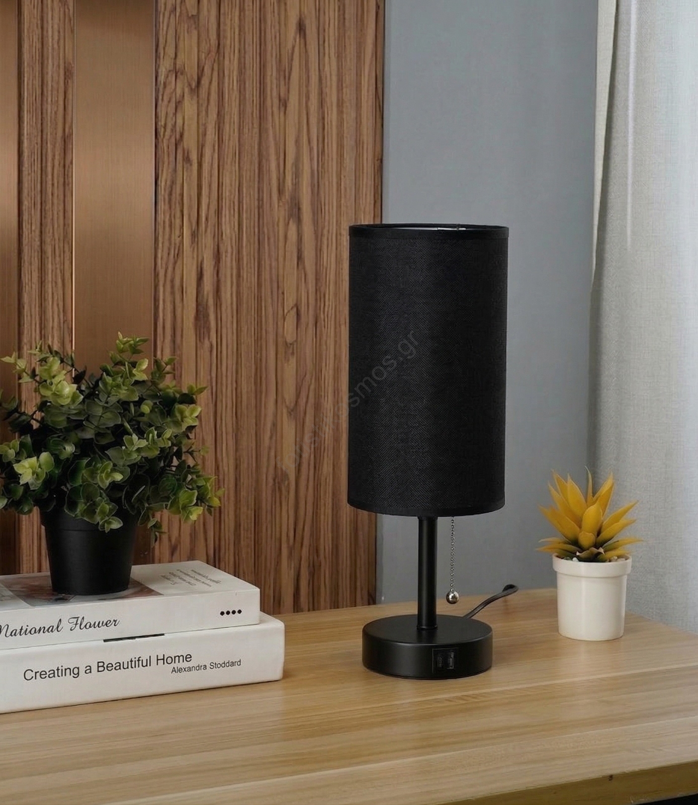 Brilagi - Επιτραπέζιο φωτιστικό με θύρα USB TABLON 1xE27/25W/230V μαύρο